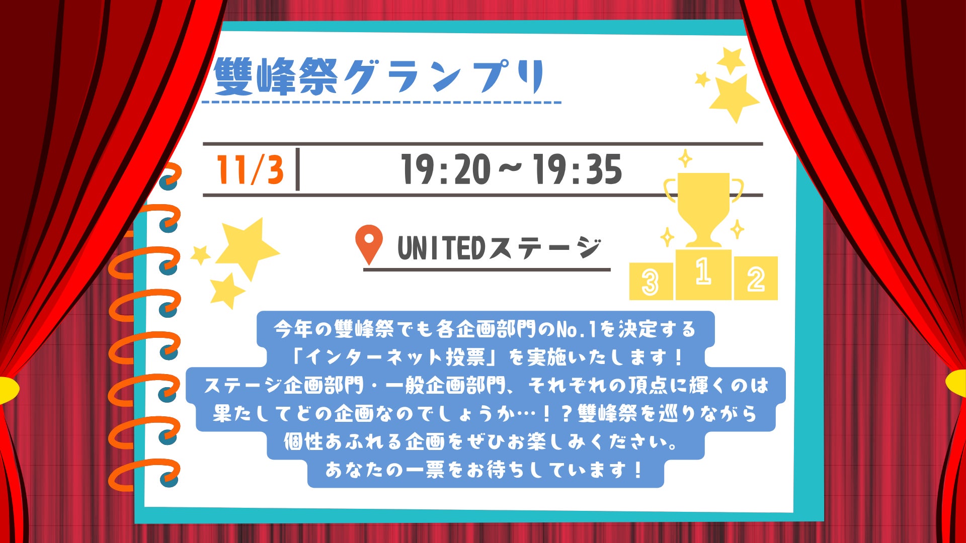 【雙峰祭グランプリ】では、皆さまからの投票をもとに雙峰祭の各部門の頂点が決定いたします!