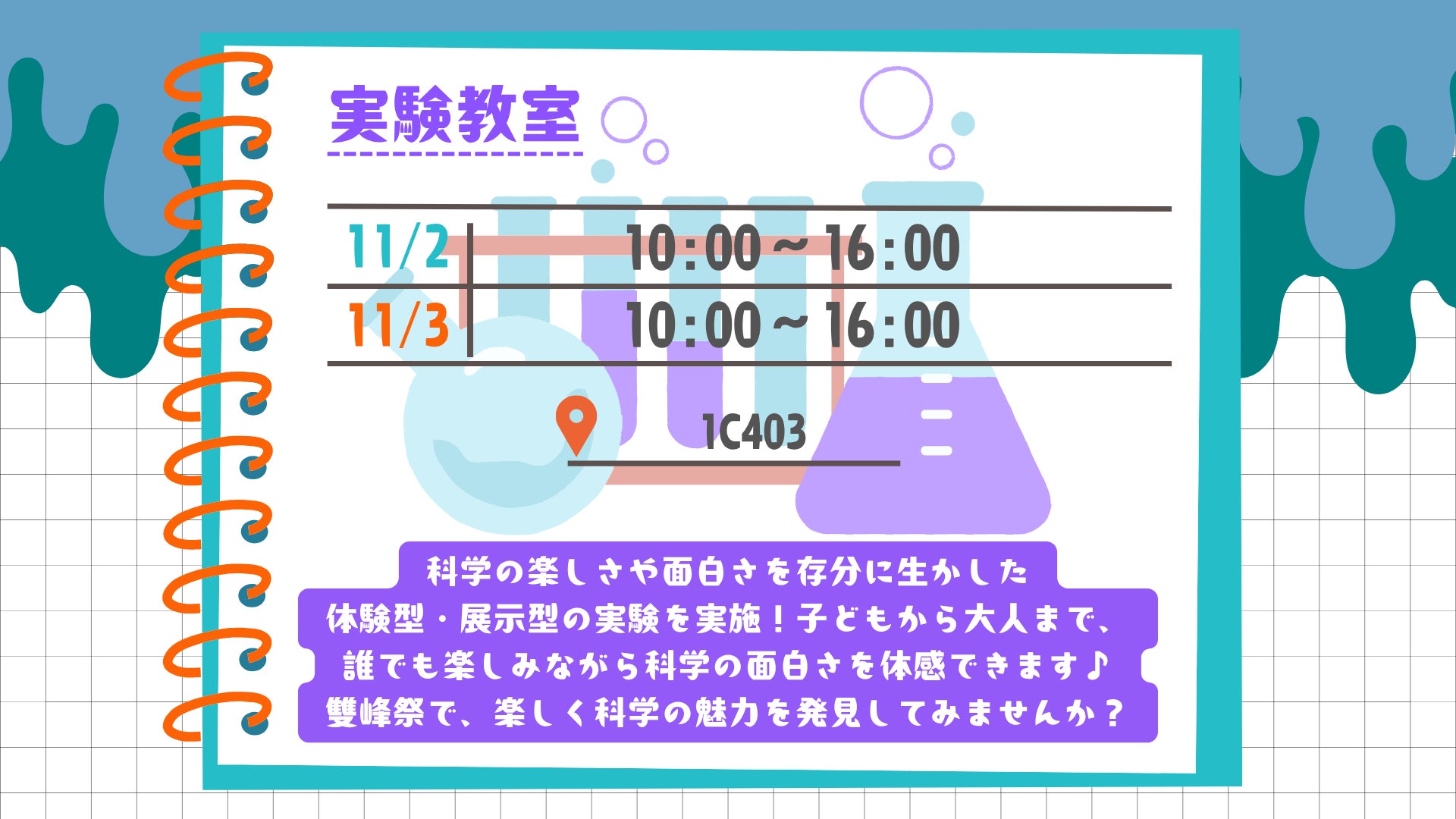 【実験教室】では、体験型・展示型の実験やクイズを通して科学を楽しみながら学ぶことができます!企画の詳細につきましては、当日販売予定のパンフレットをご確認ください。