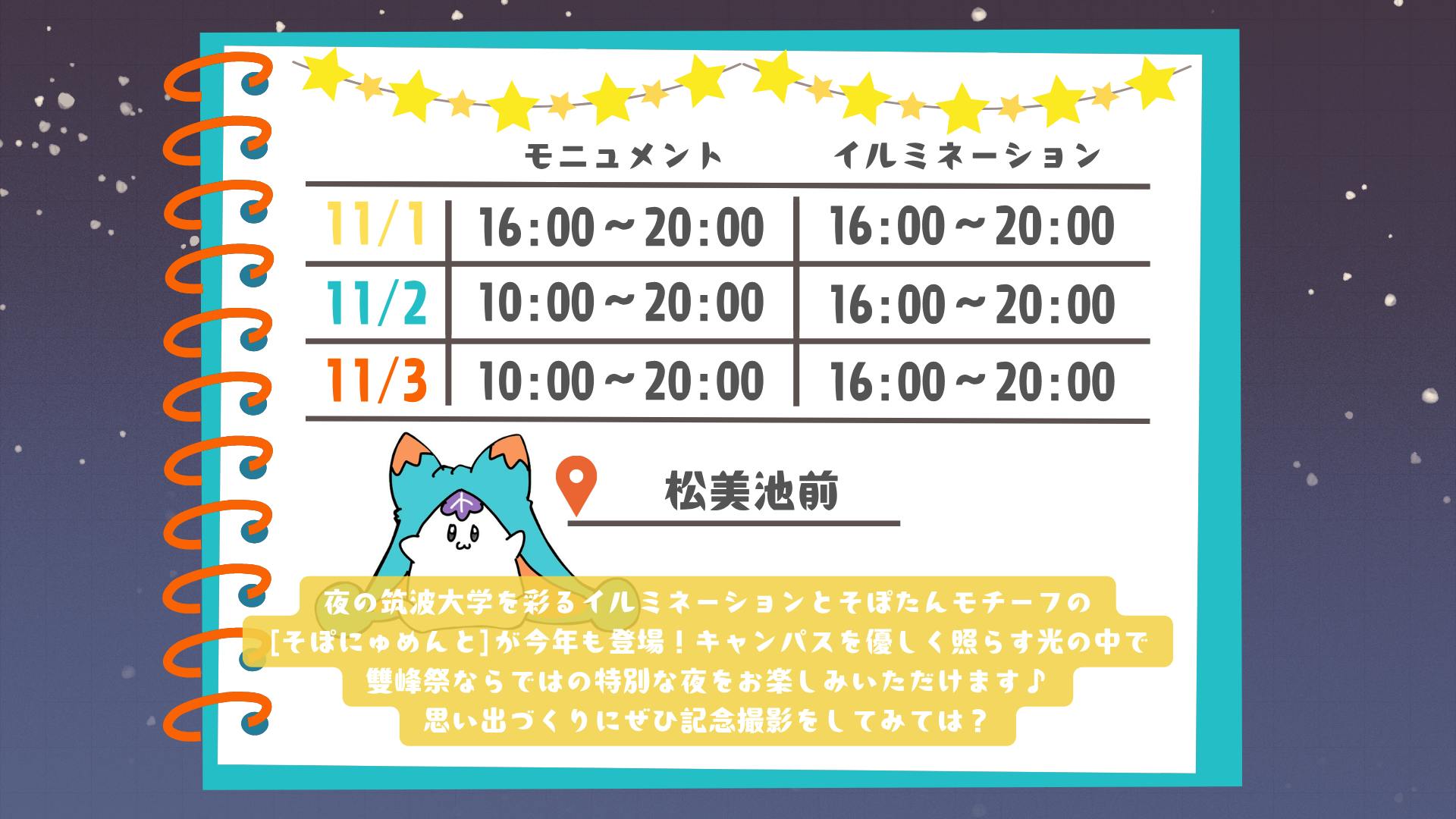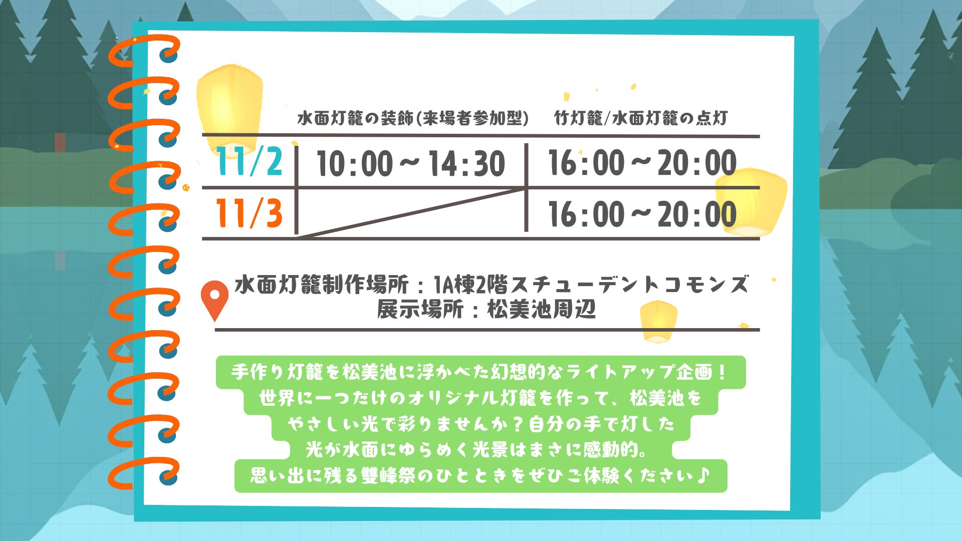 企画の詳細は『第51回雙峰祭 公式webページ-松美池ライトアップ』をご確認ください。