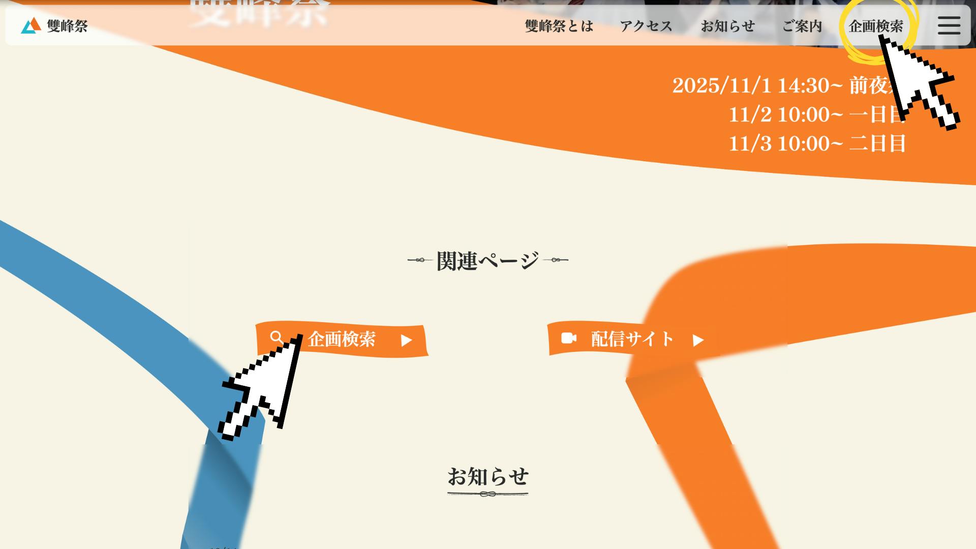 企画のお気に入り登録機能もございますので、気になる企画を事前にチェックしていただくことで、雙峰祭当日をより一層お楽しみいただくことができます。多種多様な企画を思う存分お楽しみいただけるよう、こちらの企画検索システムもぜひご活用ください!