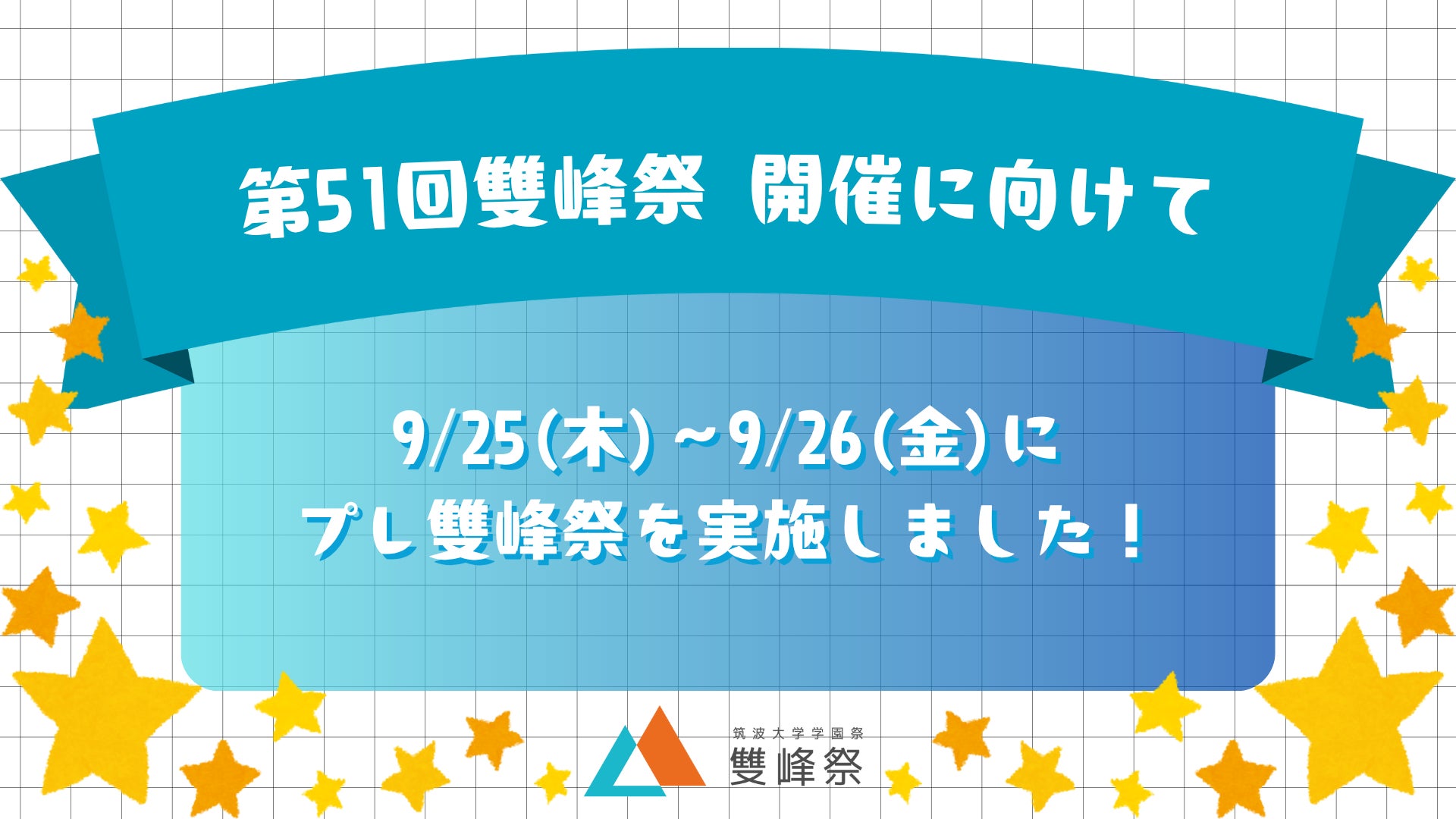 ご覧いただきありがとうございます!筑波大学学園祭実行委員会です。第51回雙峰祭の閉幕から、早くもおよそ2週間が経過いたしました。活気と熱気に満ちた余韻が残る一方で、雙峰祭終了後の大学内はすぐに試験期間へと移行し、雙峰祭の後片付けや試験勉強などに追われる慌ただしい日々を過ごす学生が数多く見られるようになりました。現在は試験期間も終了し、学内には再び穏やかな日常が戻りつつあります。紅葉によって鮮やかに彩られた木々が並び、秋らしい落ち着いた空気がキャンパスを包み始め、雙峰祭の思い出を静かに振り返るのにぴったりの季節となりました。そこで、我々実行委員会を構成する局の1つである「情報メディアシステム局」が作成した『第51回雙峰祭ダイジェスト』をご紹介いたします!! こちらは「情報メディアシステム局」の局員が雙峰祭期間中に自ら撮影・編集を行い、第51回雙峰祭の見どころをギュッと凝縮した素晴らしいダイジェスト動画になっています。雙峰祭を形作るひとつひとつの瞬間を丁寧に切り取り、その魅力を余すところなく収めた渾身の作品をぜひご覧ください!熱気あふれるステージ企画や個性豊かで多彩な一般企画、笑顔であふれるキャンパスの様子などを動画を通してお楽しみいただき、雙峰祭の魅力を再び味わっていただけましたら幸いです。