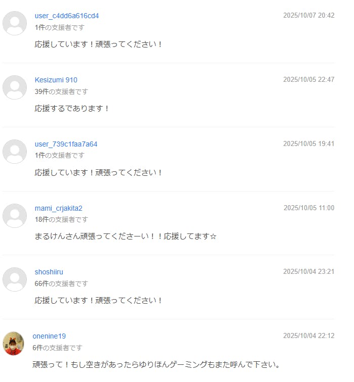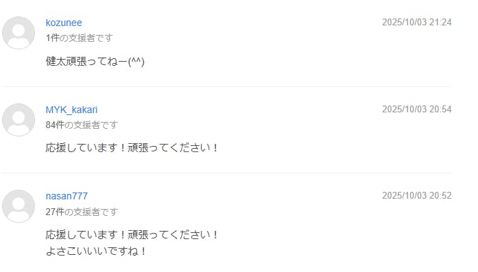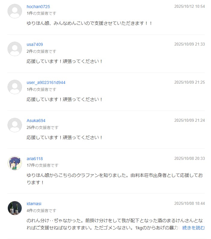 支援してくれた方々から頂いた応援メッセージは私たちの原動力になります。