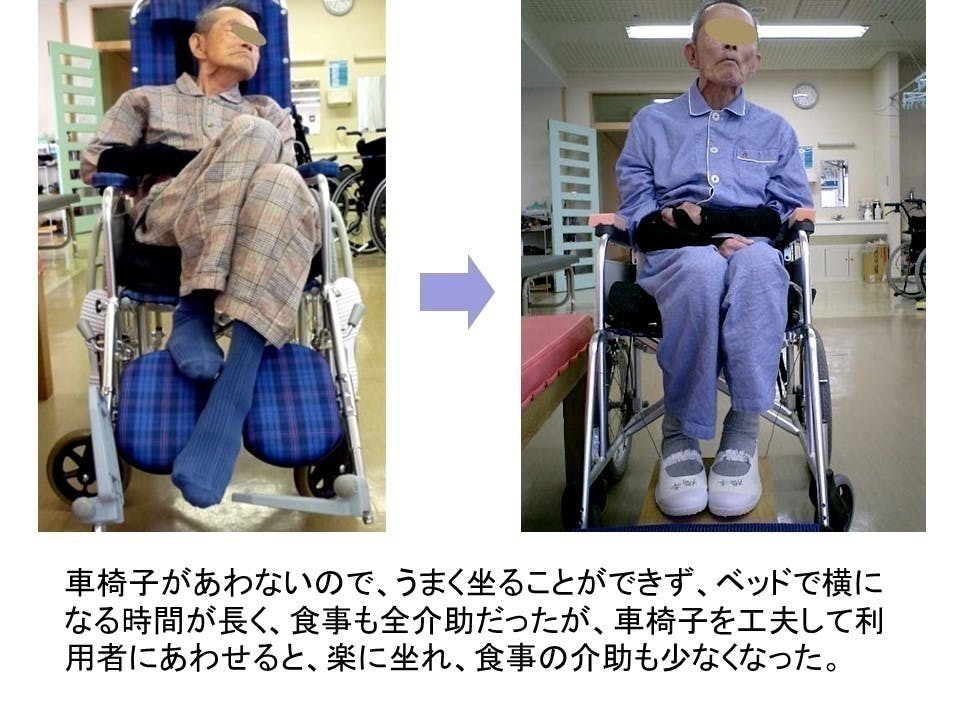 高齢者施設では起きて生活できる能力があっても、その方にあった適切な椅子や車椅子がないために「寝かせきり」になってしまう例が多い。筆者の50年の活動を若い方に伝え、この分野で活躍してもらいたい。
