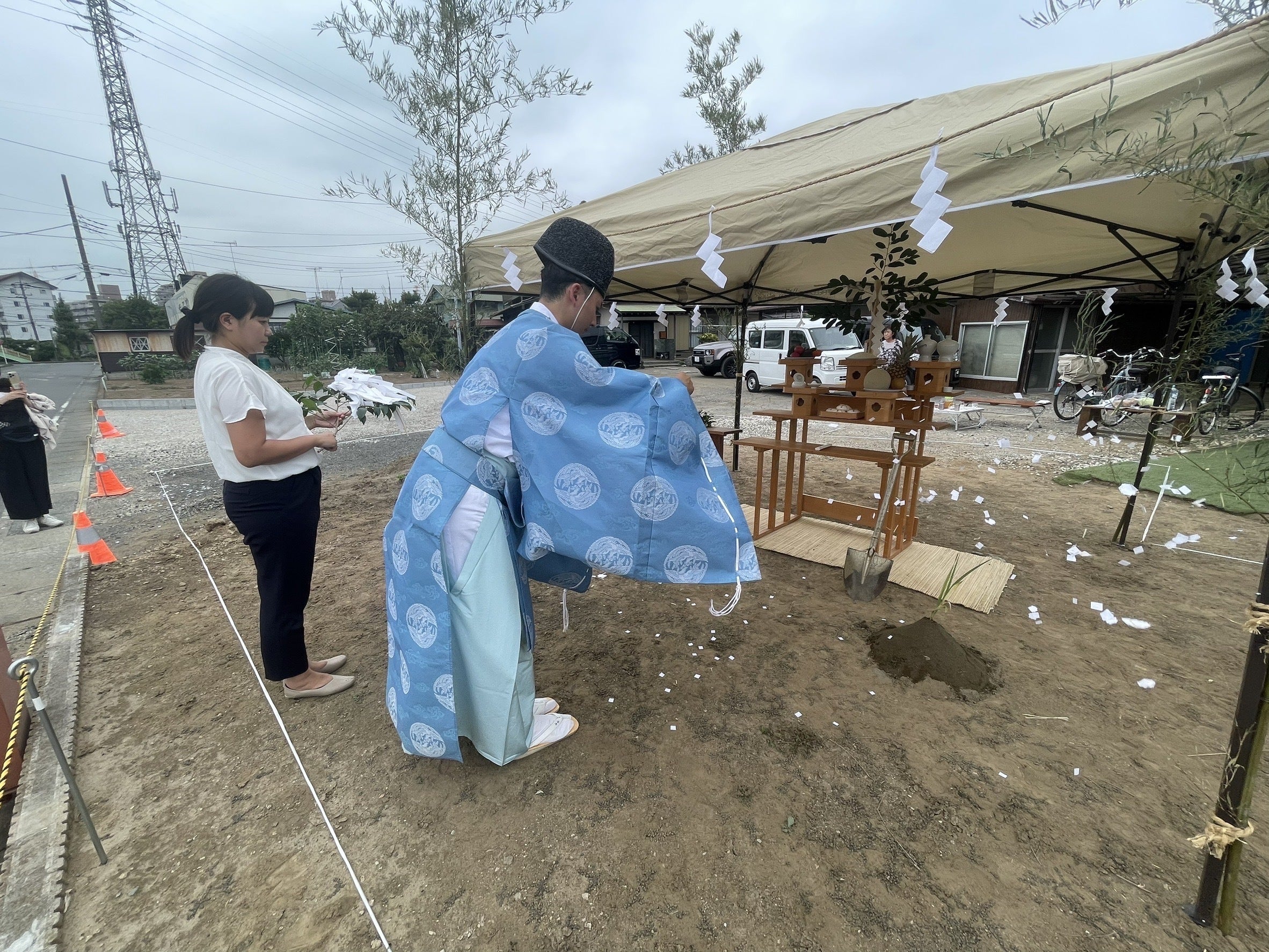 八方除の大神をお祀りする寒川神社にご奉仕いただき、建設予定地もエネルギービンビンに沸くのを感じました。