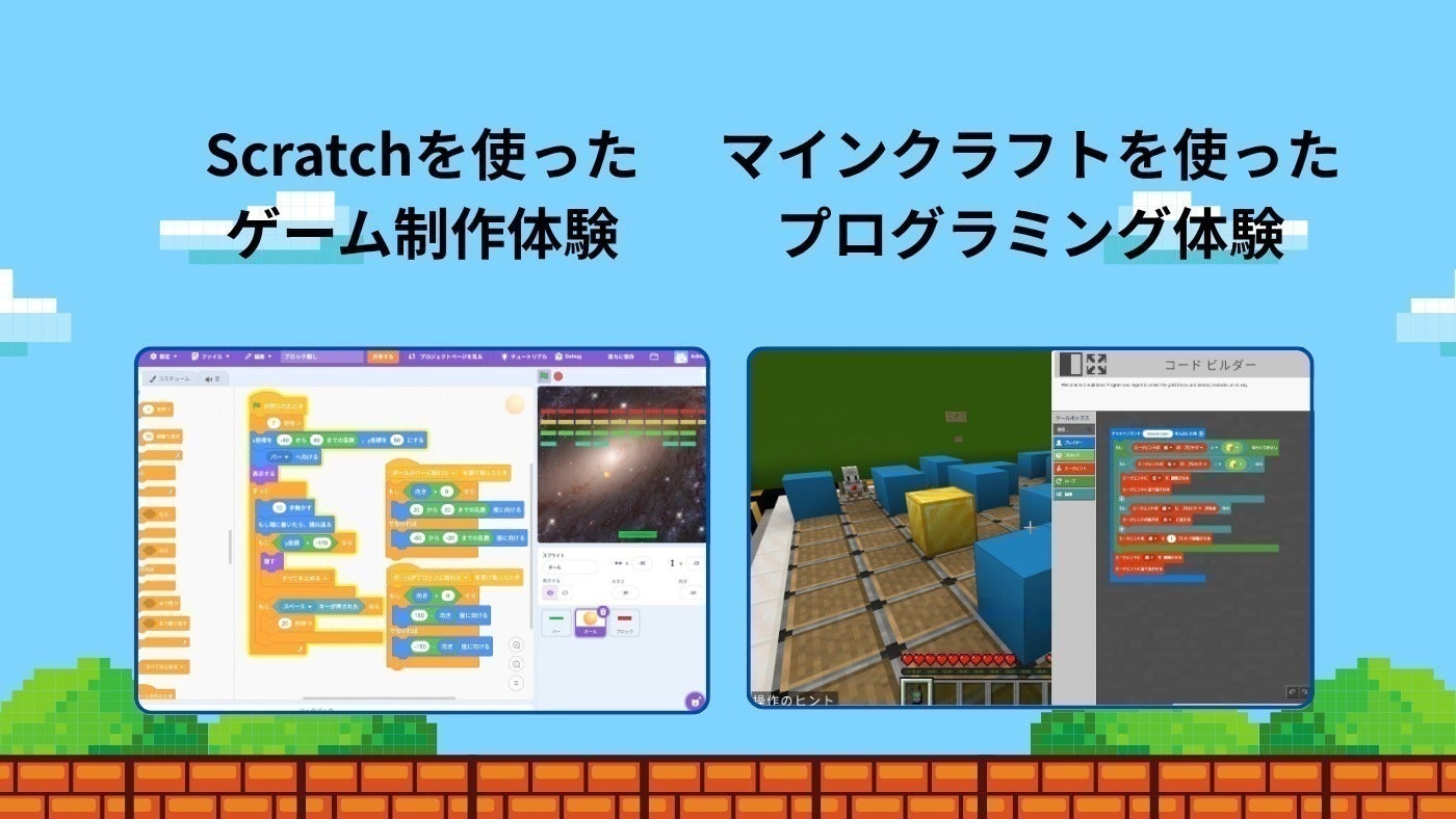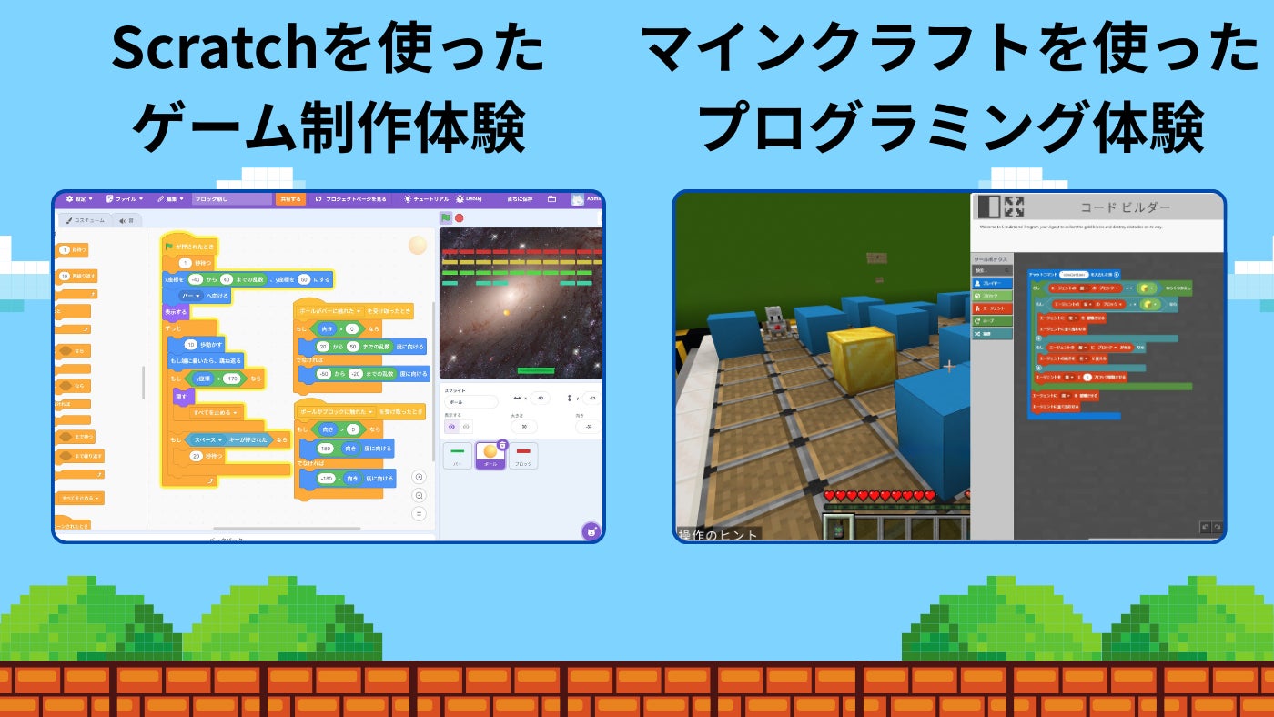 子供向けのプログラミング環境であるScratchや大人気ゲームのMinecraftを教材として使い、子どもたちが遊ぶように学べる「楽しい学びの場」をつくります。この教室では、知識だけでなく「失敗してもいい」「自分の力で動かせた!」という成功体験を重ね、自己肯定感を育むことを大切にしています。