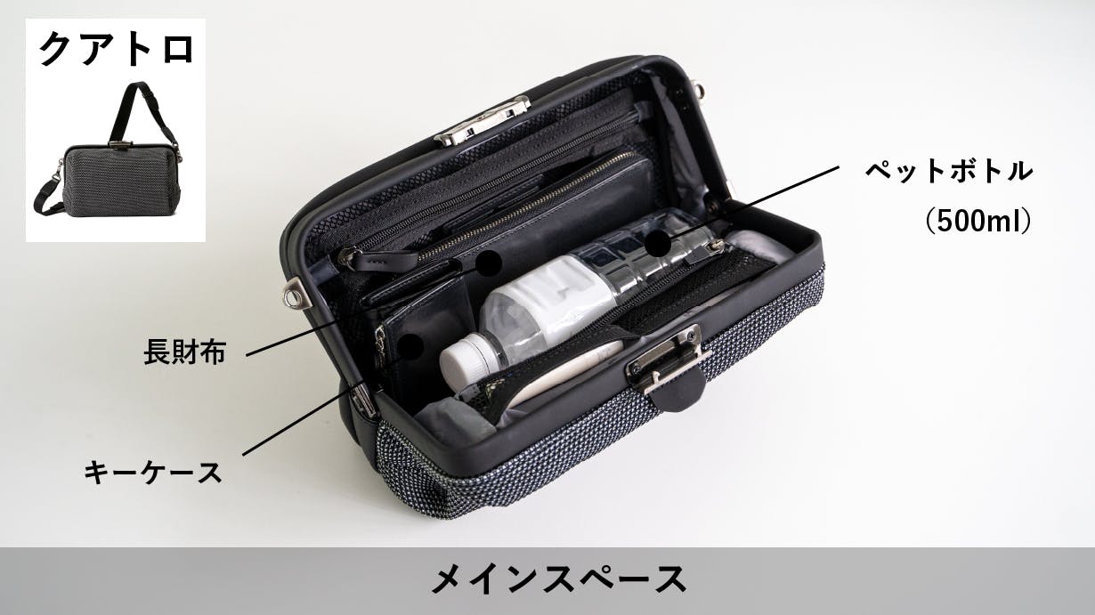 - ②こだわったのは、”もうちょっと欲しい容量”。コンパクトながら財布もボトルも携帯も入るように進化!