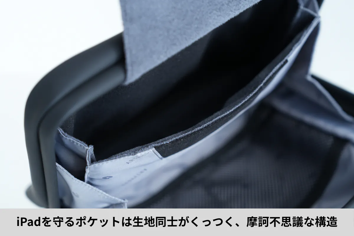 *11インチのiPad Proサイズまで+一般的なケース入りでも収納できます。■ 幅広ベルトで疲れにくく、カジュアルな雰囲気にもぴったり