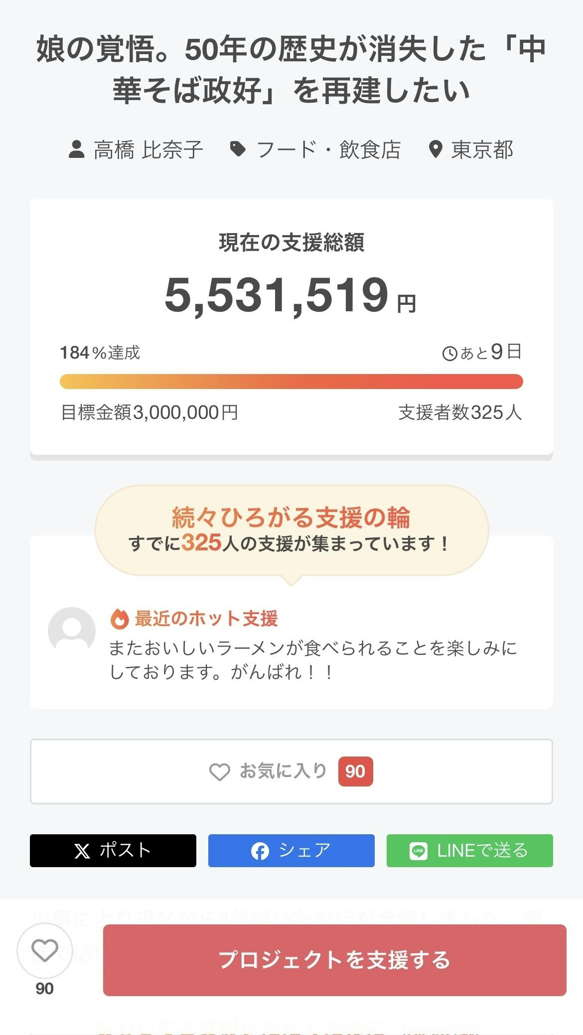 そして325名の支援者の皆様本当にありがとうございます。