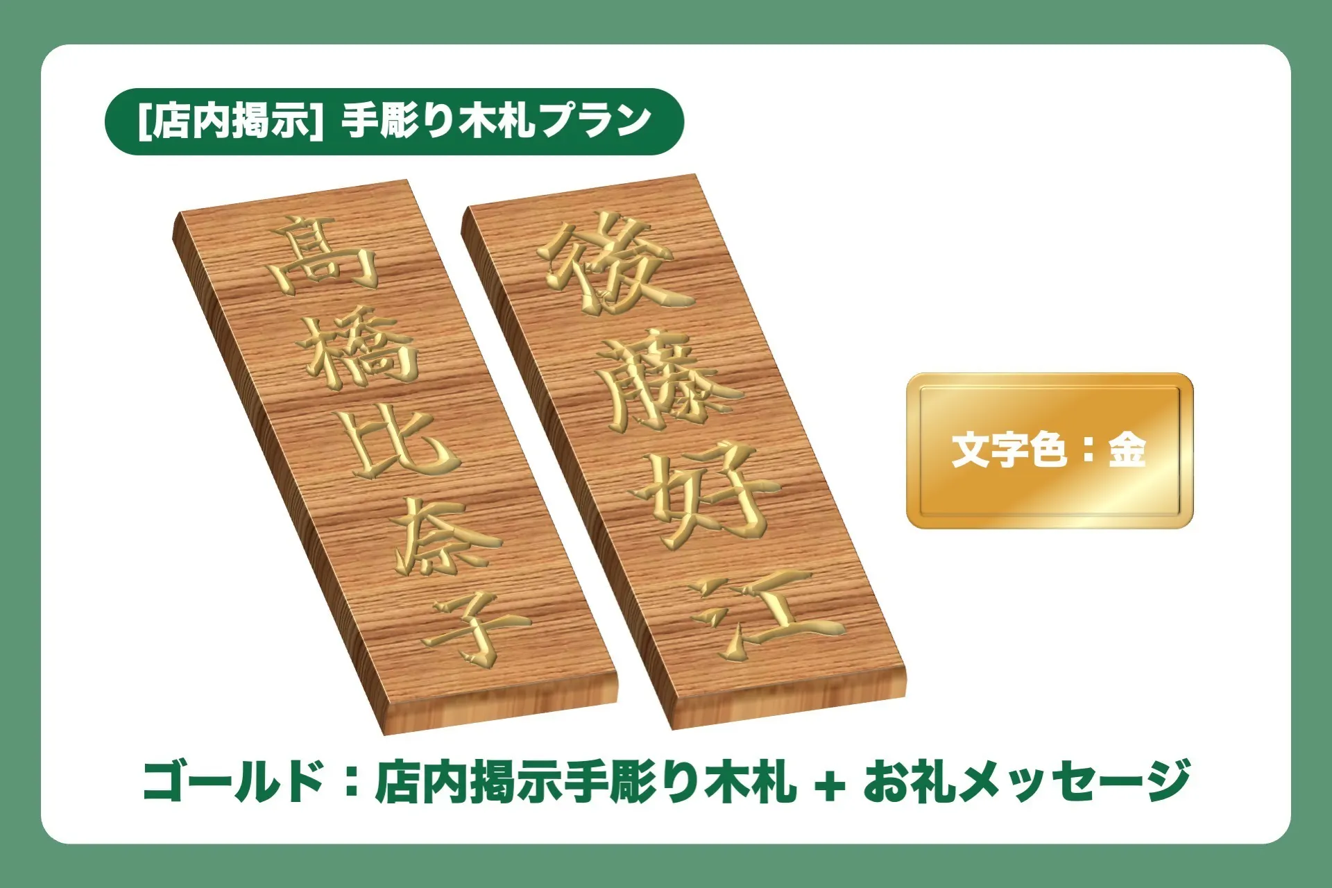 本日は店内掲載予定の手彫り木札のご紹介です!(上記写真はイメージ画像、文字色はお値段により変わります。)