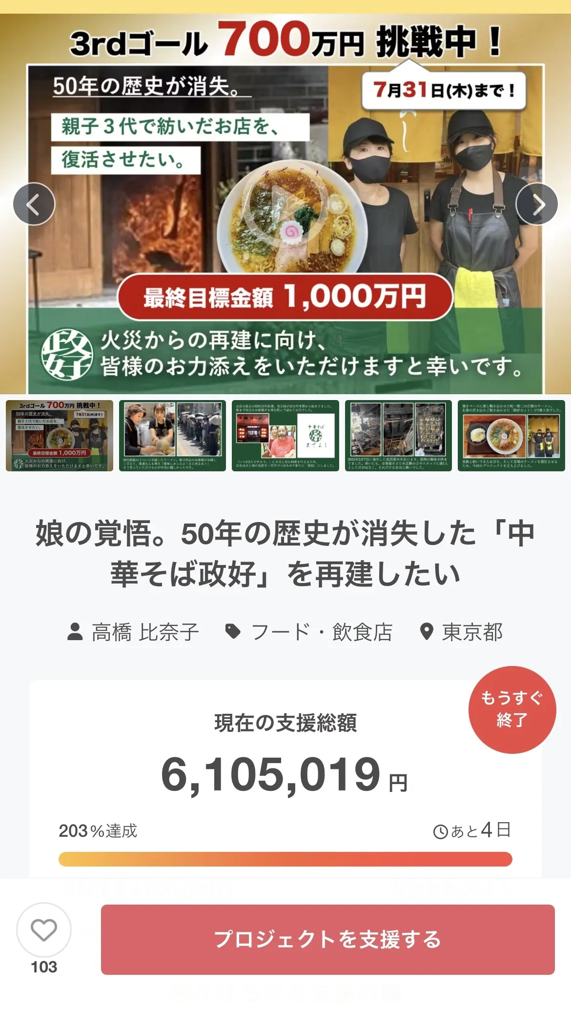 残り4日になり、引き続き3rdゴール700万円に向けて頑張りますのであたたかく見守っていただければと思います。