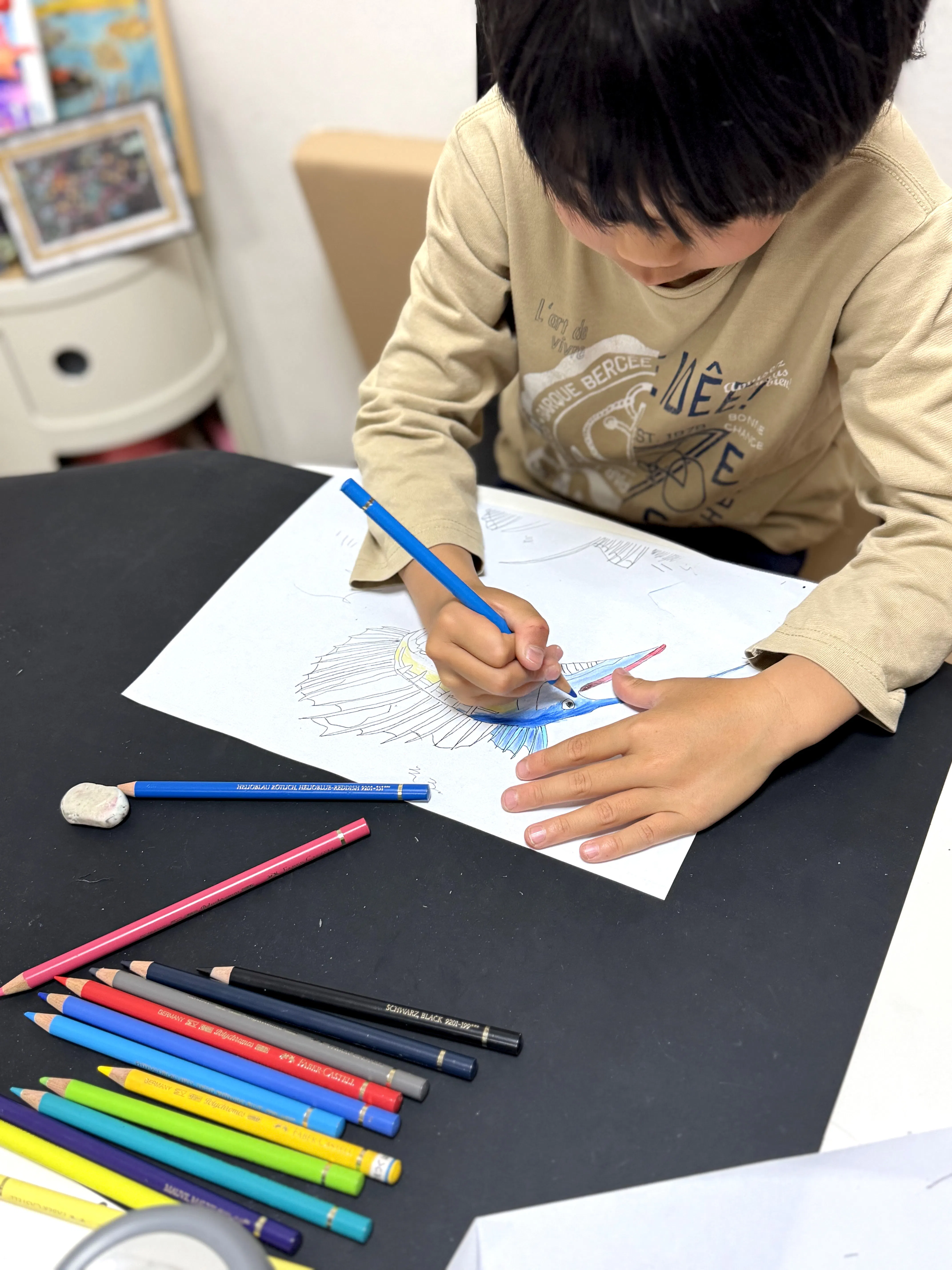 お魚が大好きなメンバーは、絵を描くのが好きな子も多く、このプロジェクトも「みんなの絵を使ったTシャツを作りたい!」というメンバーの声から立ち上がりました。