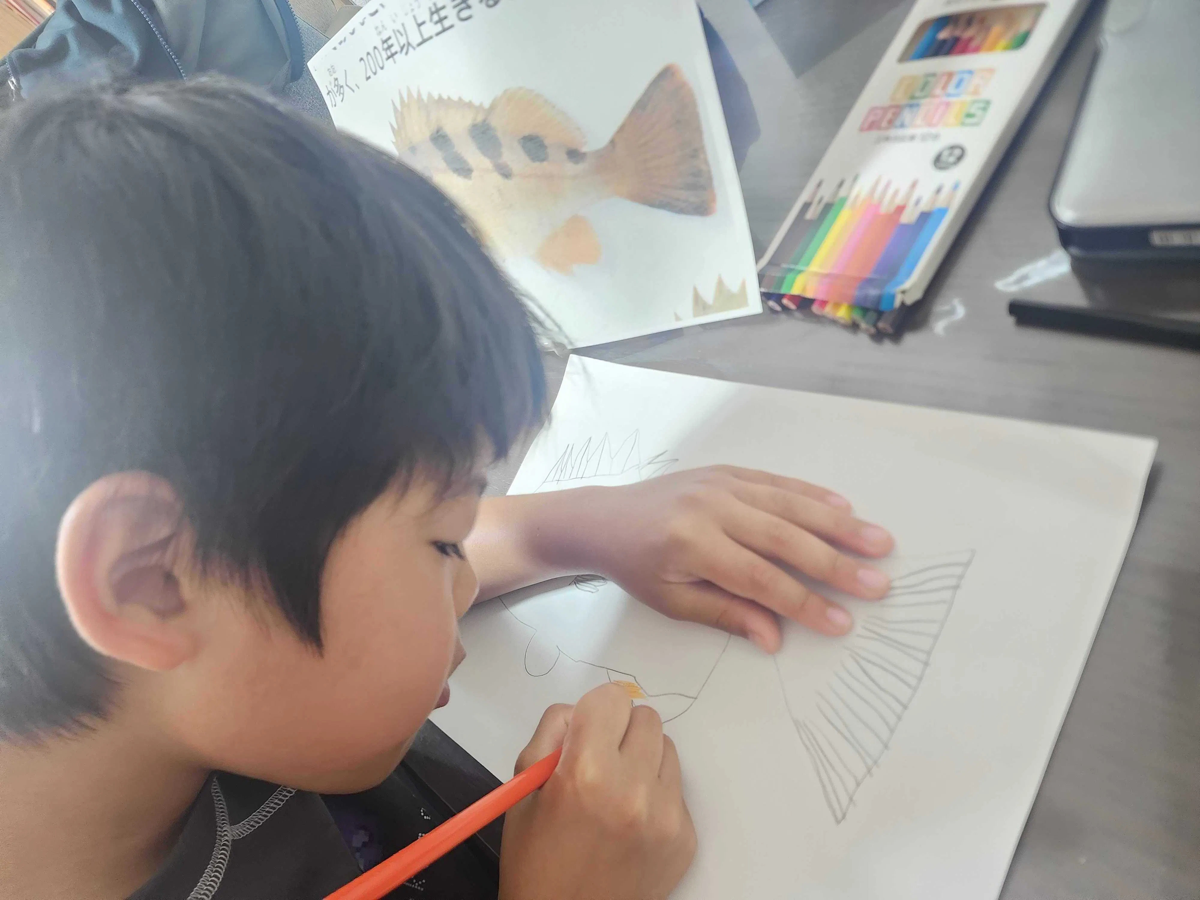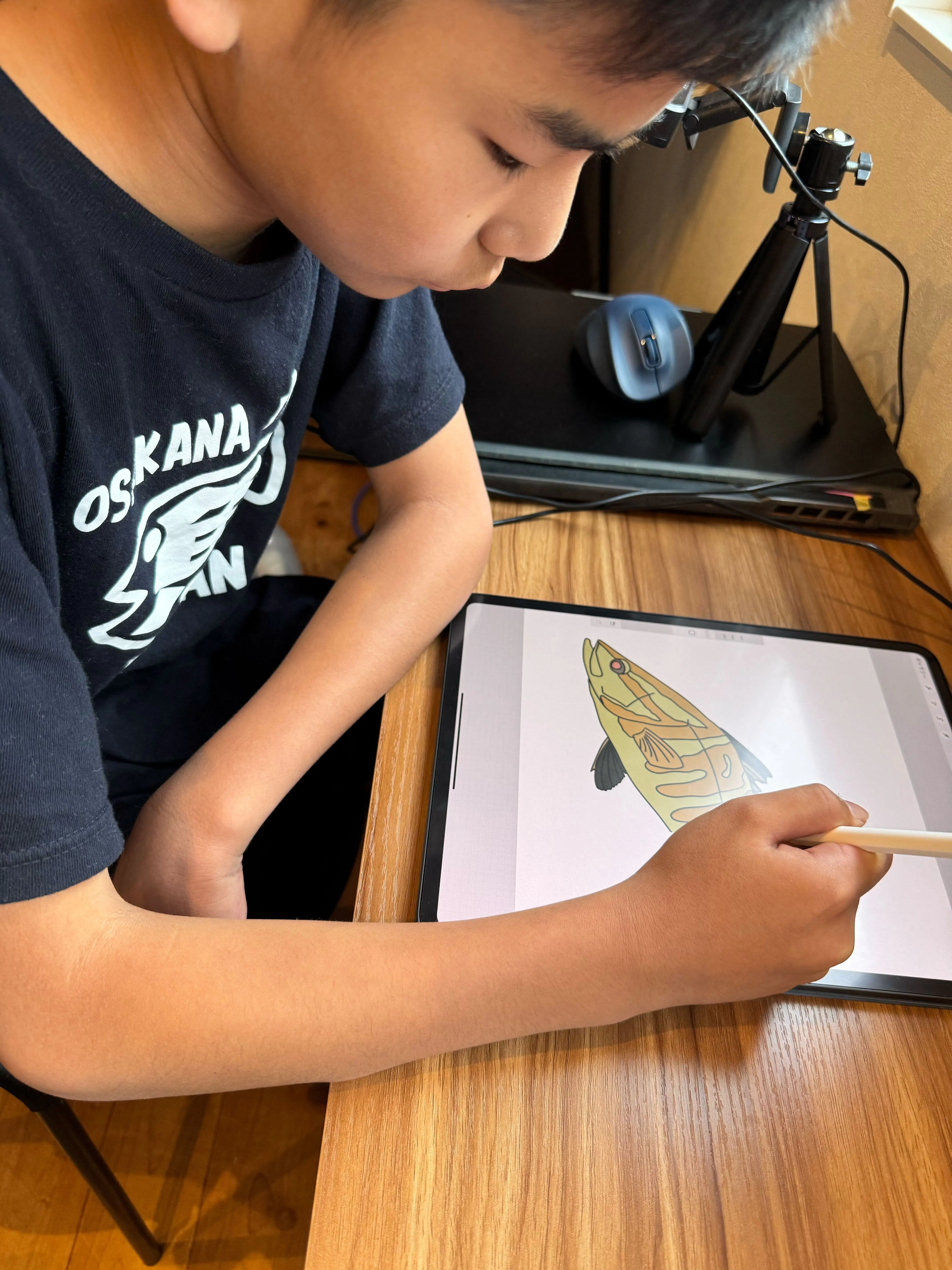 Tシャツそのものは、正直ありふれたものです。すでにたくさんのかっこいい「お魚Tシャツ」はありますし、持っている子も多いです。