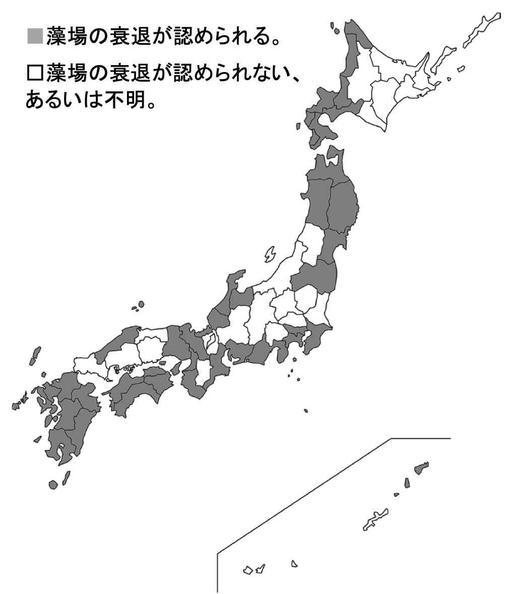 世界中で課題とされており、日本国内(沿岸39都道府県)でも約8割の都道府県が、海藻類は衰退傾向にあると報告しています。