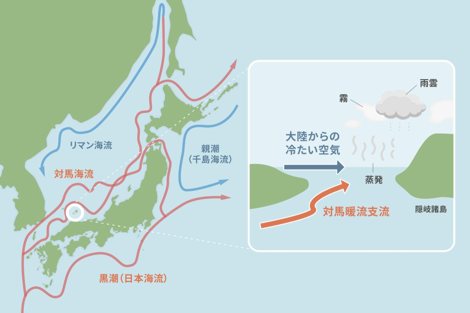 海士町は、日本海に面しながら、暖流と寒流の境界に位置しています。暖流の影響によって水温が安定しつつ、寒流系の栄養塩も供給されるため、豊かな海洋プランクトンが存在し、多種多様な魚介類が生存できる環境が整っています。温暖と冷水系が混在する海域は生物種の多様性を高め、全国的にも有数の好漁場とされています 。