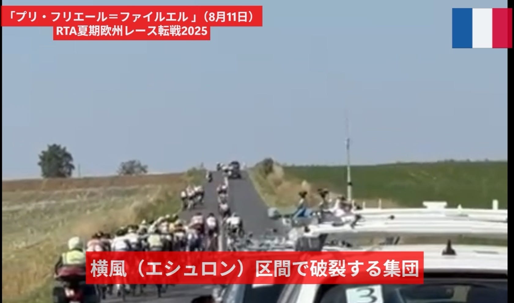 フランス北部の強風地帯で行われた、横風分断必至の高速レースに出場した「RTA夏期欧州レース転戦」参加選手たち。 体格や経験の面から、日本人選手にとっては苦手とされがちなタイプのレースで苦戦を強いられましたが、全員が無事に完走。欧州でしか味わえない過酷なレースを走り切り、かけがえのない経験を積みました。 優勝は15~16歳カテゴリー時代にフランスチャンピオンとなった21歳、マティス・ピション。今季3勝目を挙げ、プロを目指す有望株として着実にキャリアを重ねています。 【レース情報】 ・レース名:プリ・ド・フリエール=ファイルエル ・開催地:フリエール=ファイルエル(フランス北部・オー=ド フランス地方)【レース結果】 1位:Mathis PICHON(TEAM LOCKIMMO.COM) 2位:Blaine KIECK(CC VILLENEUVE SAINT-GERMAIN)3位:Antoine TERRIER(ESEG DOUAI)4位:Bastien PICHON(TEAM LOCKIMMO.COM)14位:渡辺一気(京都産業大学/EQADS) 28位:新藤大翔(EQADS) 36位:関口煌大(渋川高等学校・EQADS) 38位:沢野司(EQADS) 41位:税所連(バルバサイクルレーシングチーム/EQADS) 45位:佐藤愛折(弱虫ペダルレーシングチーム/EQADS) 52位:山田俊太郎(弱虫ペダルサイクリングチーム・EQADS) 64位:中尾涼介(EQADS)