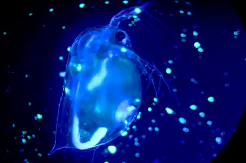 蓄光ラメを食べさせたミジンコ
