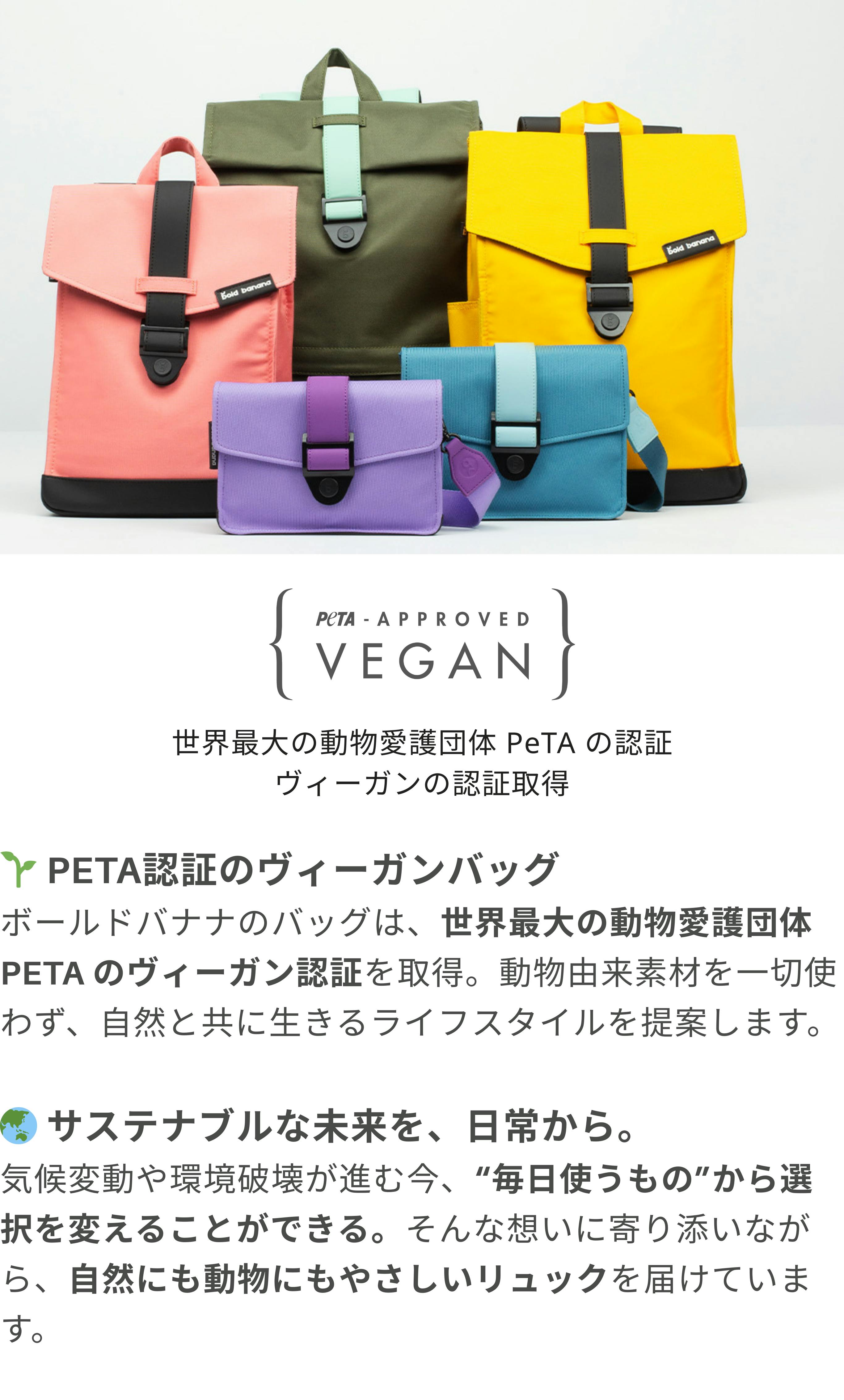 2019年7月、オランダのアイントホーフェンで誕生した Bold Banana。「環境・動物・人にやさしいフェアな生産」を信条に、 サステナブルなヴィーガンリュックブランドとしてスタートしました。