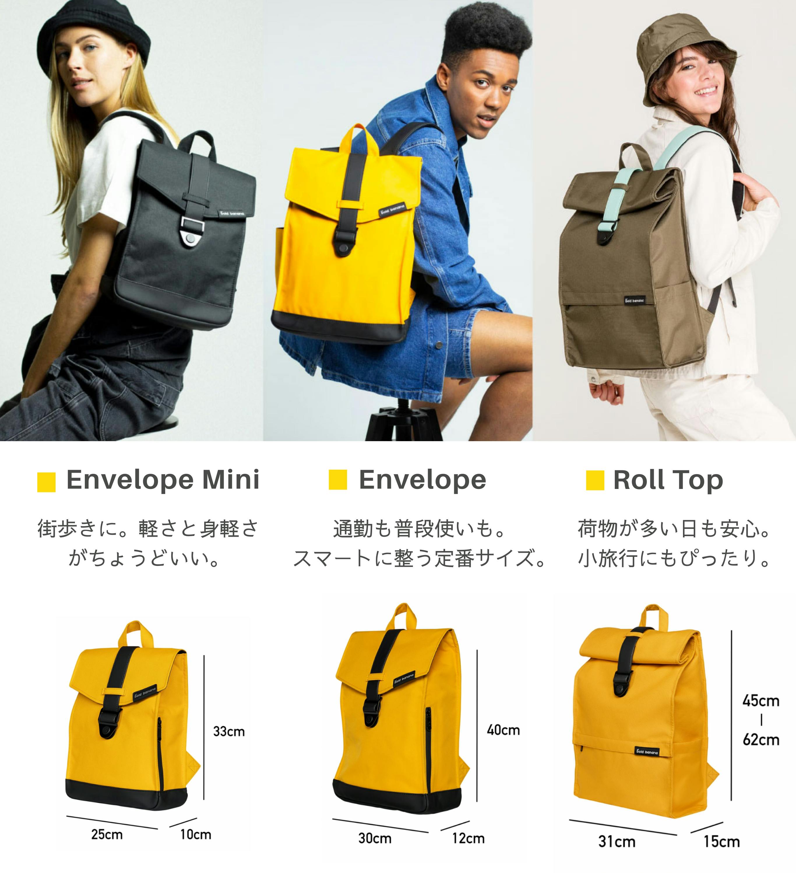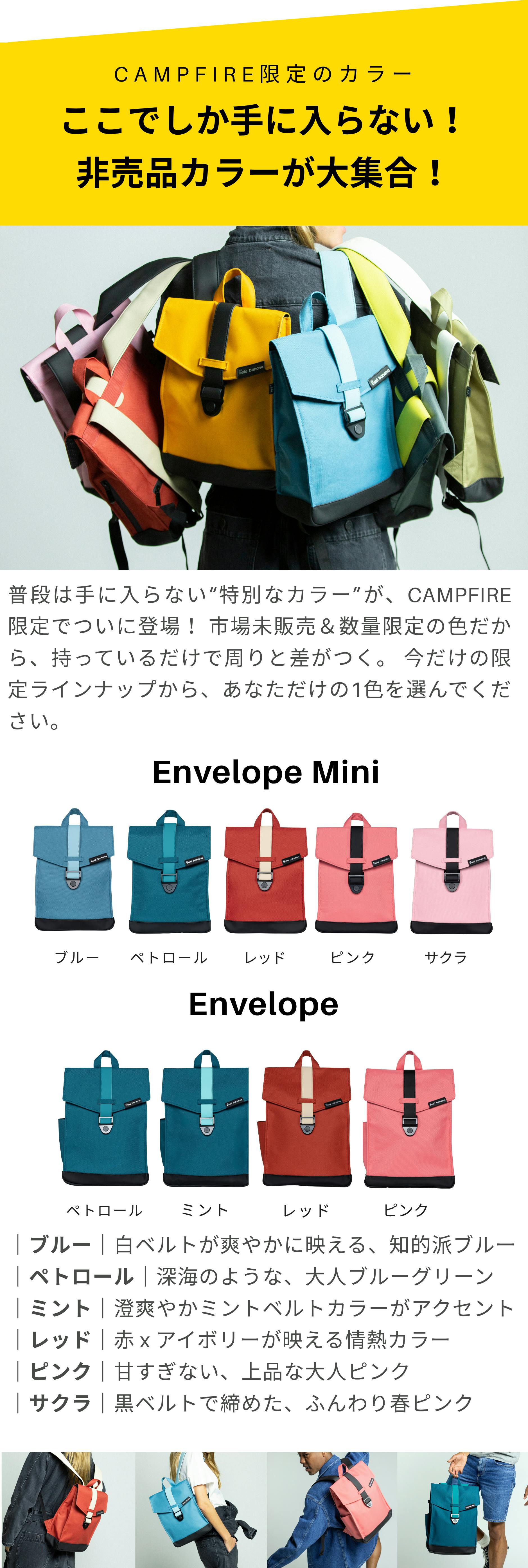 象徴的な“封筒”モチーフのミニマルデザイン、街でも映えるカラーバリエーション、 そして誰もが使いやすいユニバーサルな設計。