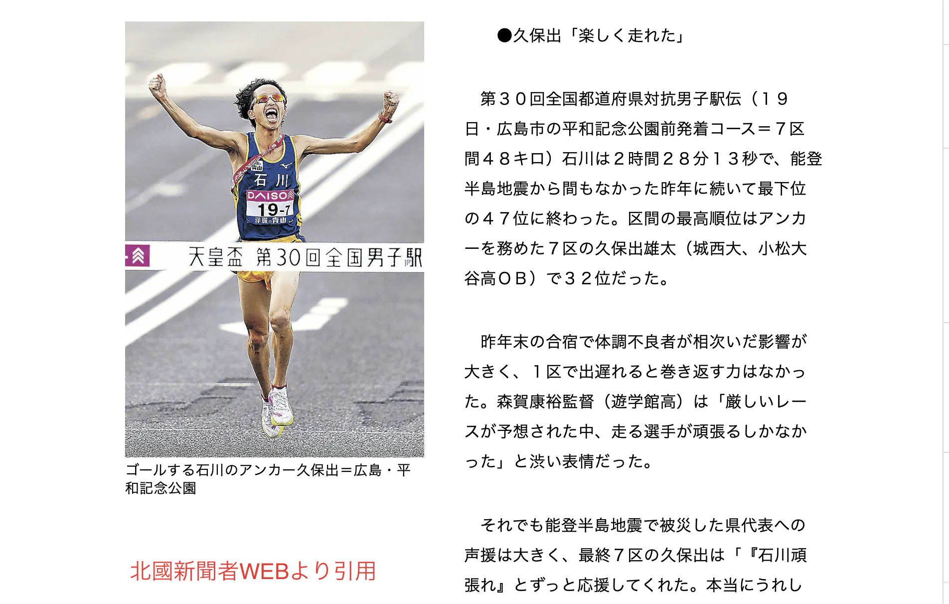 ここ石川でランニングの発信をする僕にも何か思う出来事でした。