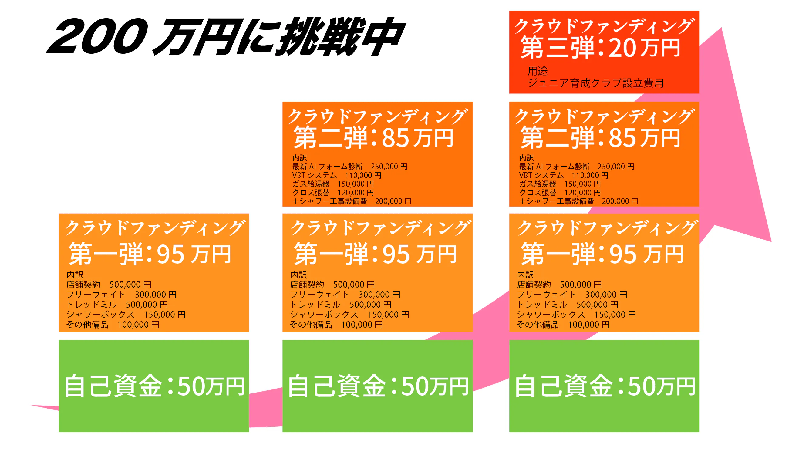 クラウドファンディングの目標を200万円に引き上げて挑戦したいと思っております。