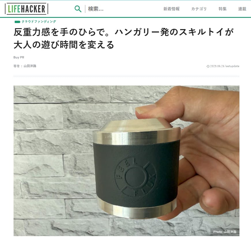 ご支援いただいている皆さまへいつも温かいご支援を賜り、誠にありがとうございます。月間2,600万PVを誇るテクノロジーメディア「GIZMODO」と、“おうちスタイル”をテーマに暮らしを彩るライフスタイルメディア「ROOMIE」にて、FEEL FLUXをご紹介いただきました!心より感謝申し上げます。▼ 掲載記事はこちら【GIZMODO】▶ 反重力感を手のひらで。ハンガリー発のスキルトイが大人の遊び時間を変えるhttps://www.lifehacker.jp/article/machi-ya-feelflux-additional-851522/【ROOMIE】▶ 手のひらで反重力体験。デスクを彩るサイエンストイの新定番「FEEL FLUX」https://www.roomie.jp/2025/07/1541190/多くの方にFEEL FLUXの魅力を知っていただける素晴らしい機会をいただき、本当に有難いです<(_ _)>すでにご支援いただいた皆さまはもちろん、購入をご検討中の方もぜひご覧いただき、FEEL FLUXの世界観を体感していただけたら幸いです。今後も、サイエンスやスキルトイにご興味をお持ちの皆さまにワクワクをお届けできるよう、心を込めて取り組んでまいります。引き続き、FEEL FLUXをどうぞよろしくお願いいたします。