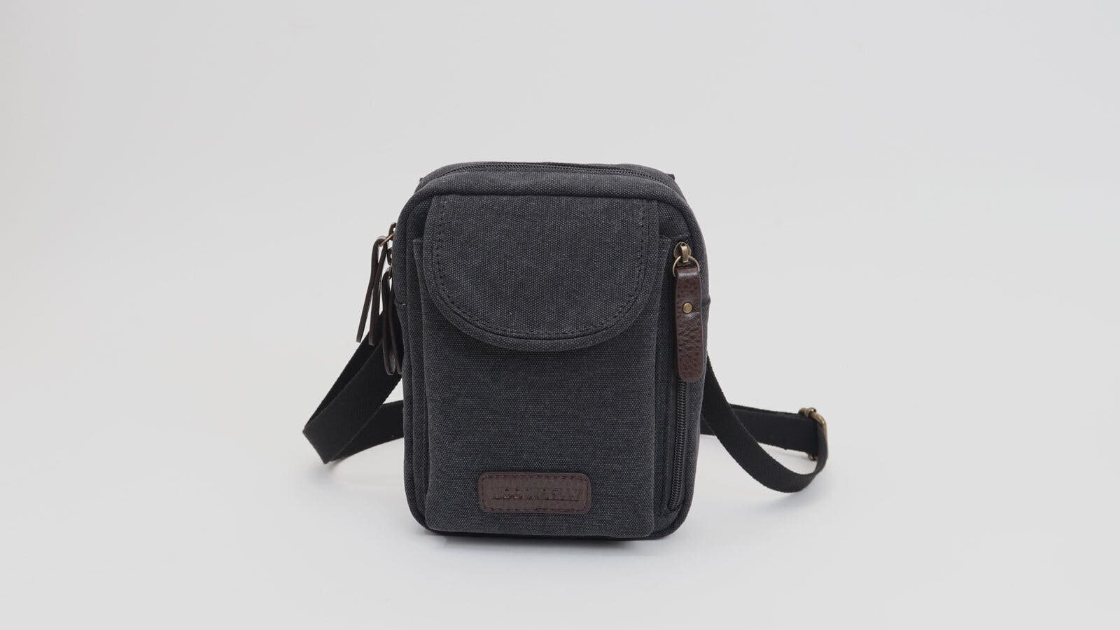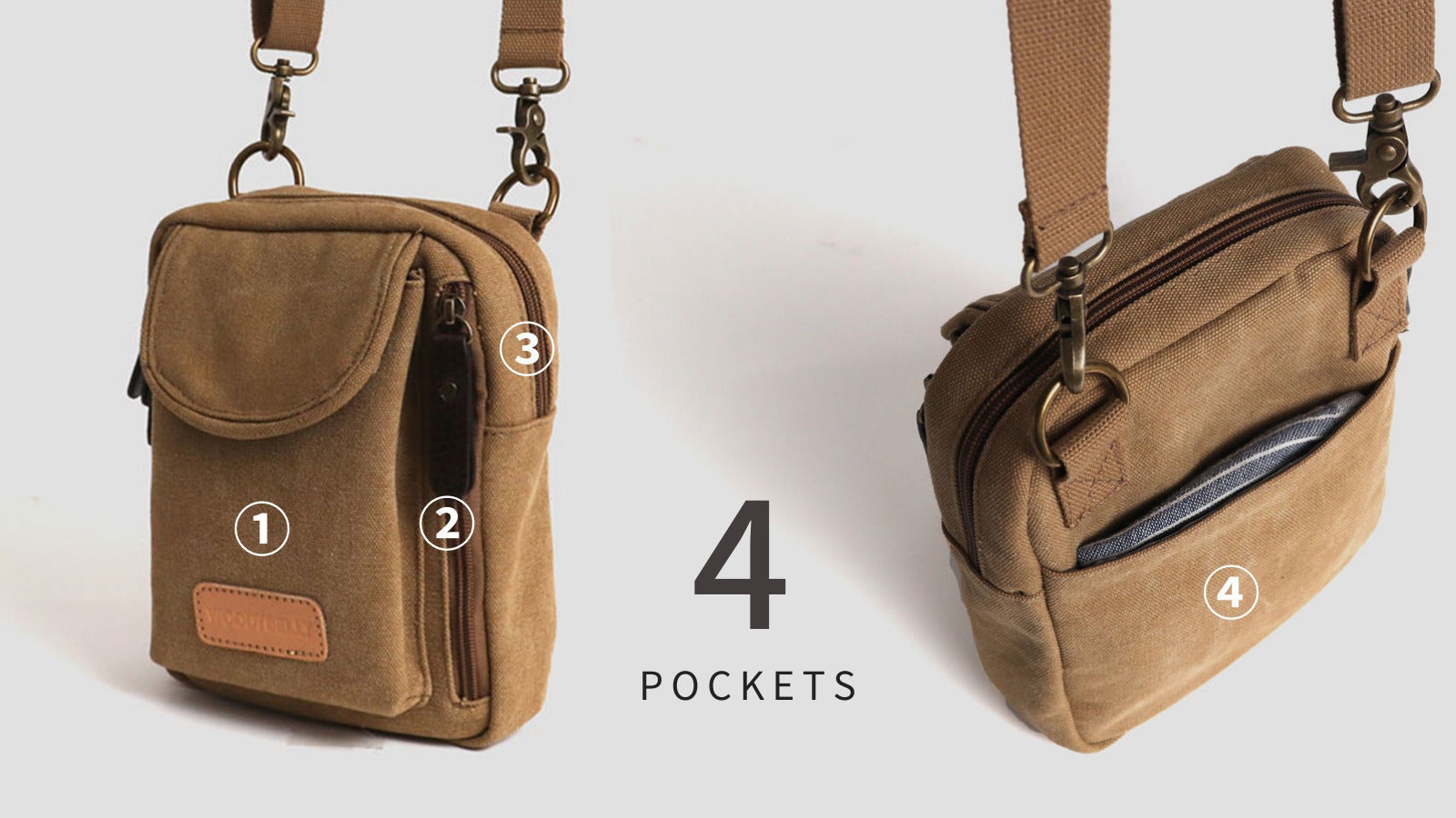 A4サイズながら小物もスッキリ5ポケット付! フラップ式・軽量帆布ショルダーバッグ