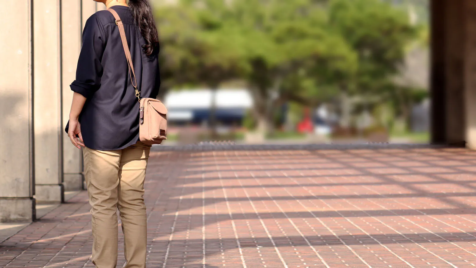 厚みがでにくい形状だから人混みでも歩きやすい。