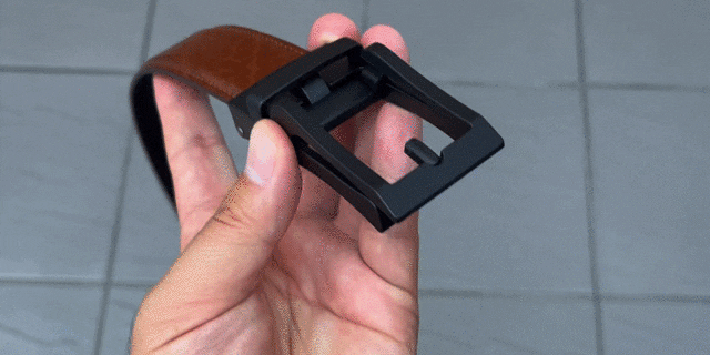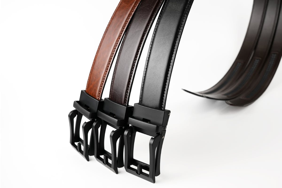 ベルトを差し込み、通すだけで着用できるオートロック機能。面倒なベルト穴でのサイズ調整をする必要はありません。