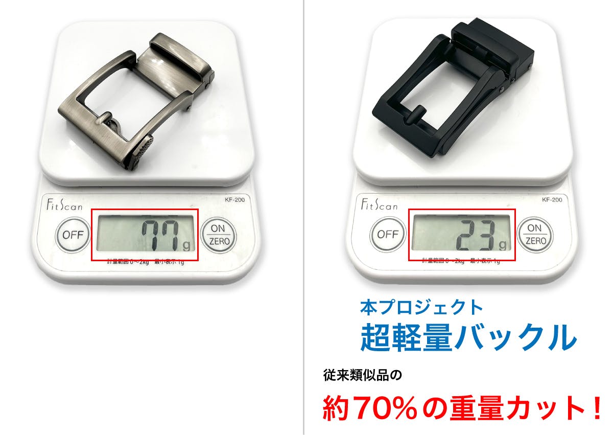 従来類似品のバックルと比べて、大幅な重量減少となっています!