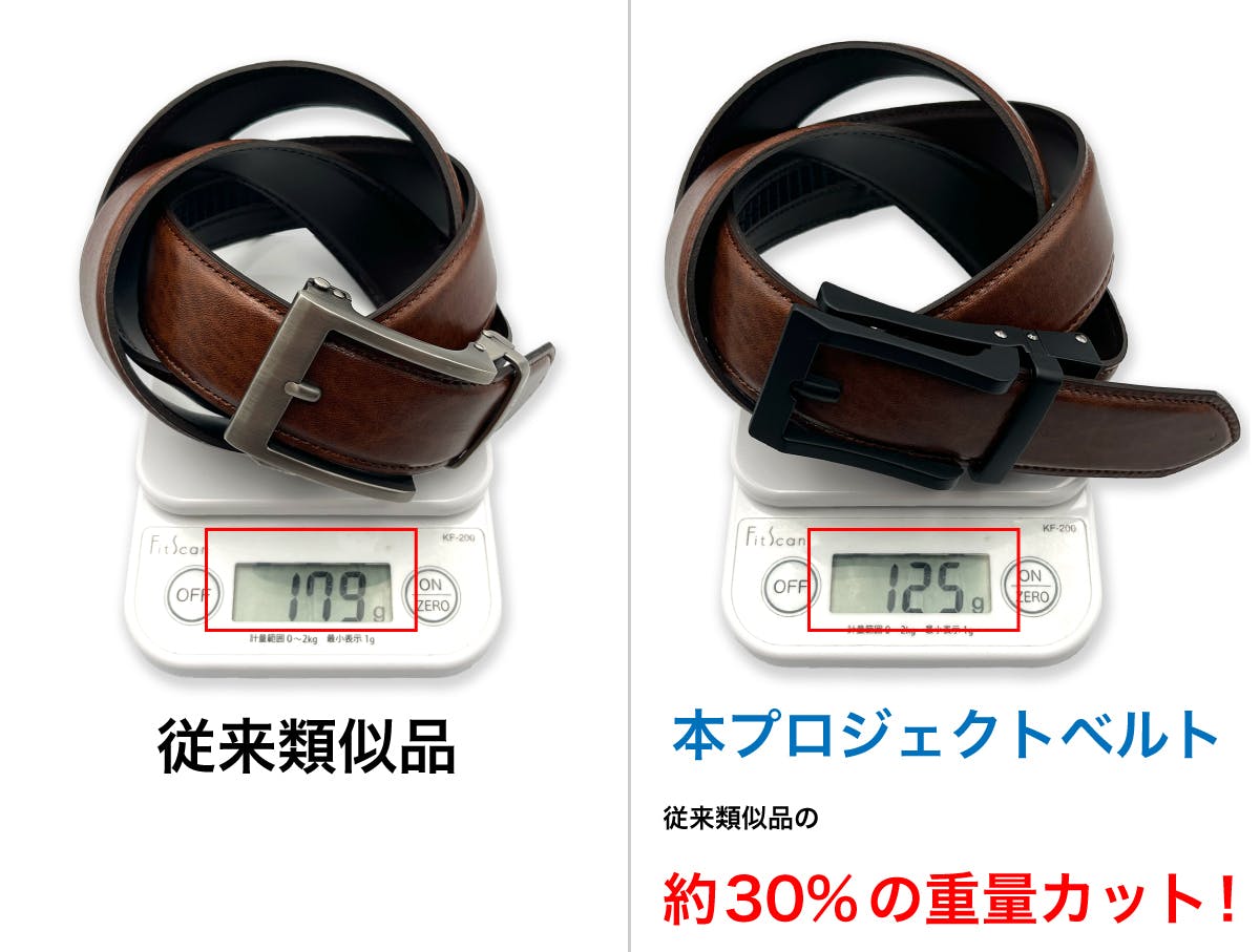 ベルトの仕上がった状態でも、従来品よりも約30%の重量をカットすることができました。