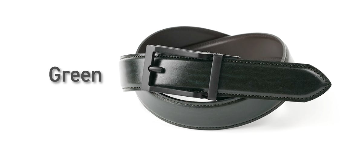 ベルト裏面が牛床革の無処理の場合や、一枚革の場合はスラックスやパンツに革の繊維がつくことがありました。これまで多くのベルトを世に出してきた経験から、特にスラックスなどでは繊維がつくのが嫌だというお声をよく聞いており、今回は裏面の牛床革にPUフィルムを圧着させて革の繊維がつかない仕様にしました。