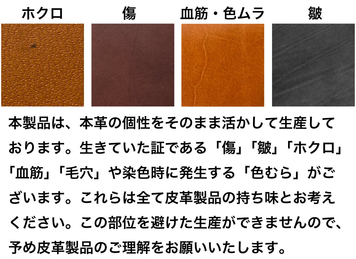 ※皮革に染料とオイルを使用し、仕上げた商品になります。その為、摩擦、水濡れになどにより色落ちが生じる場合がございます。