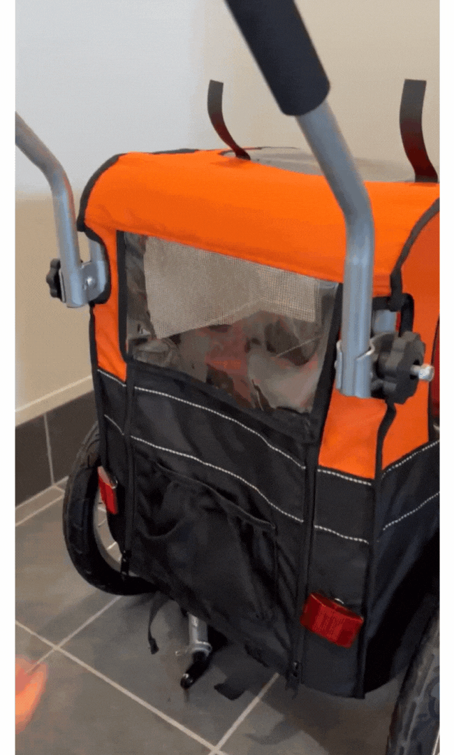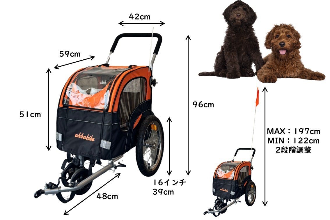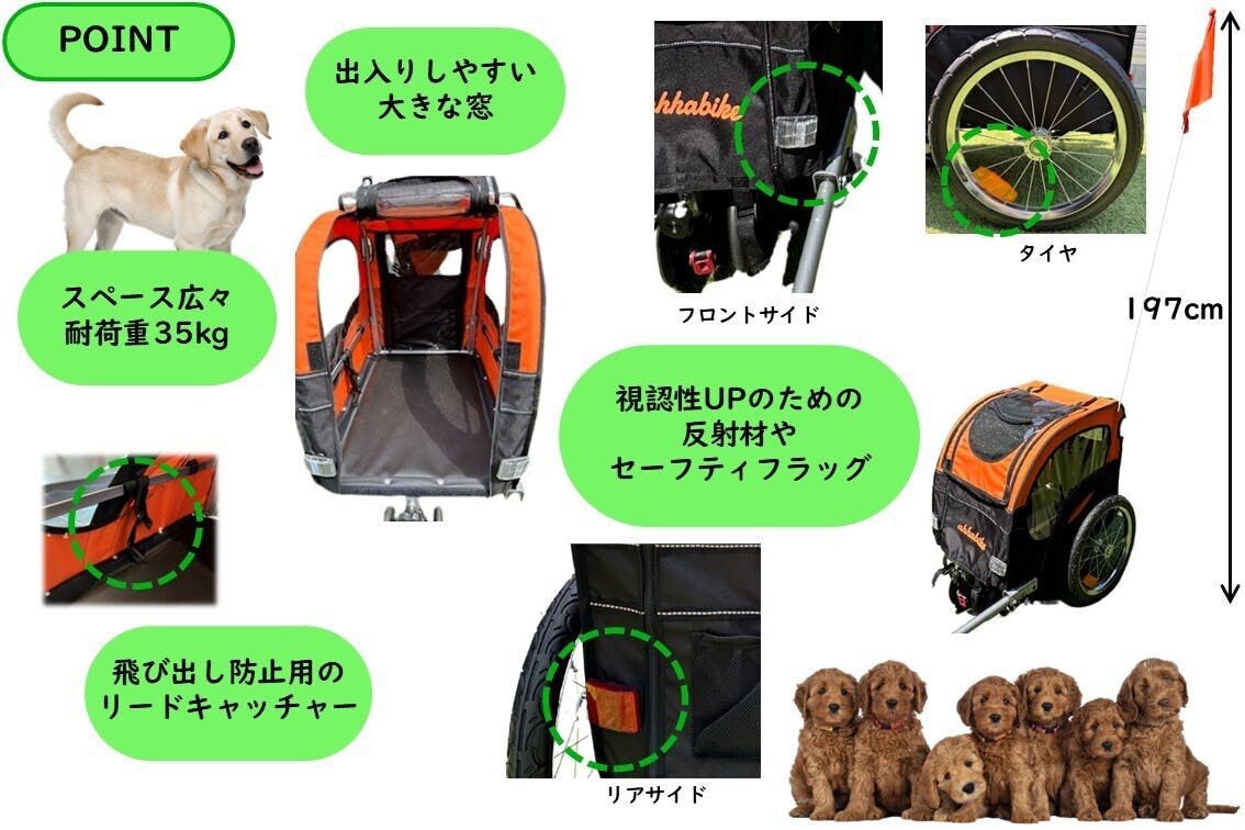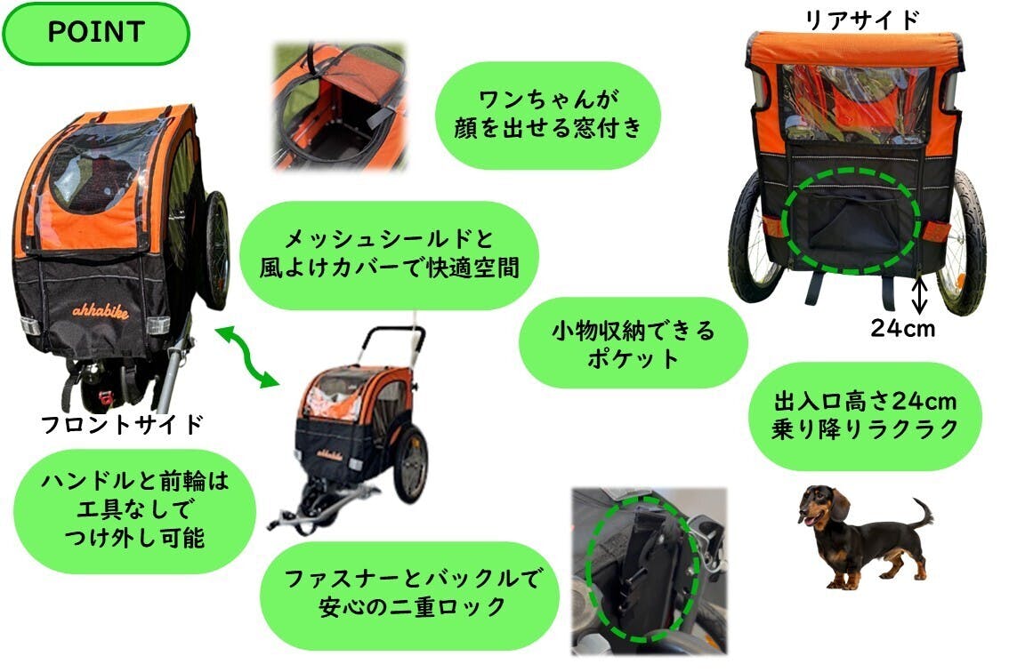 私たちがお届けするのは、自転車のうしろに取り付けてペットトレーラーとして使用することも、独立させてペットカートとして使用することもできる、わんちゃんとのおでかけグッズです。わんちゃんと一緒にいつもより少し遠くまでおでかけしてみませんか?