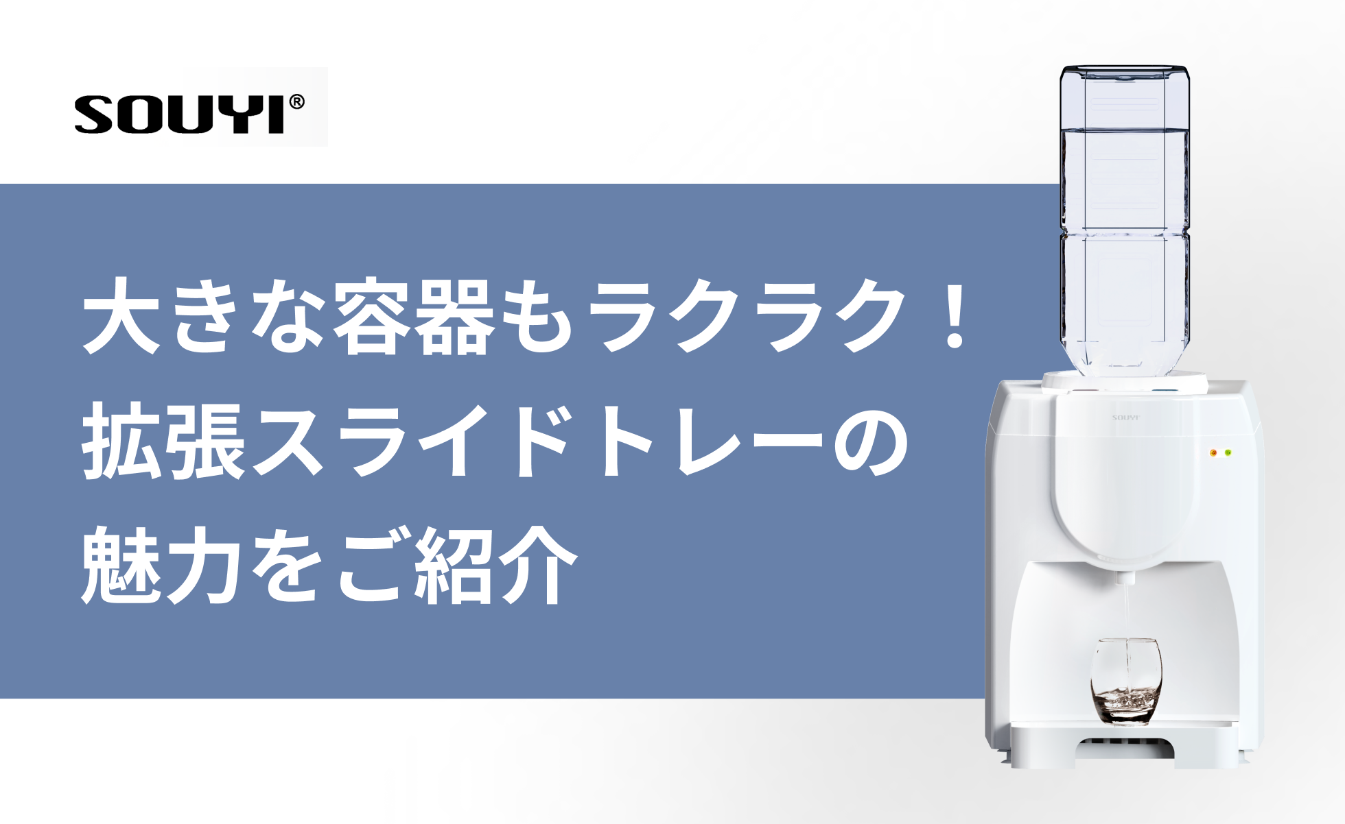 こんにちは、ソウイジャパン株式会社です。本日は、ウォーターサーバーの特徴的な機能である独自構造「拡張スライド」について、改めてご紹介いたします。独自構造「拡張スライド」とは?本製品には、容器の大きさに合わせて奥行きを11cm〜17.5cmまで調整できるスライド式の水受けトレーを採用しています。サイズ調整が自在だからこそ、さまざまな容器をしっかり安定して設置可能です。どんな容器でも安定して給水大きめのマグカップや背の高いグラスはもちろん、お鍋などの大容量容器もスッポリ収まる設計。給水中に容器を手で持ち続ける必要がなく、両手が空いて安全&快適に使用できます。キッチンで大活躍!時短調理にもおすすめ大きな容器をそのまま給水できるので、パスタやスープ作りなど調理時の給水もラクラク。キッチンへの移動回数を減らし、家事の効率をアップさせます。小さな工夫で暮らしがもっと快適にこの「拡張スライド」は、日常のちょっとした不便を解消する、使ってみると手放せなくなる工夫です。届いた際には、ぜひさまざまなシーンで便利さを体感してください。引き続き、プロジェクトへの応援をどうぞよろしくお願いいたします!ソウイジャパン株式会社 スタッフ一同\ 同時開催プロジェクトも要チェック /これ1つで家中を一掃!強力吸引・洗浄除菌・自動乾燥を搭載のブラックホール掃除機【家中を一掃する】自社史上最高レベルの「強力吸引」と「密着圧力水拭き」【目に見えない汚れや菌から解放】ウルトラ除菌水を自動生成、除菌 【ニオイの元となる汚れを徹底洗浄】除菌水洗浄・80℃ヒーター・通気口搭載で速乾数量限定!一番お得に購入する▶︎64通りの微調整で毎日の1杯を特別にする本格コーヒー焙煎機進化した本格コーヒー焙煎機!温度・風力は1〜8段階、焙煎・冷却時間は10秒単位で調整可能。ガラス容器で焙煎の様子を確認しながら、自分好みに仕上げられます。初心者でも手軽に中煎りの本格コーヒーを楽しめるオート焙煎機能を搭載。数量限定!一番お得に購入する▶︎