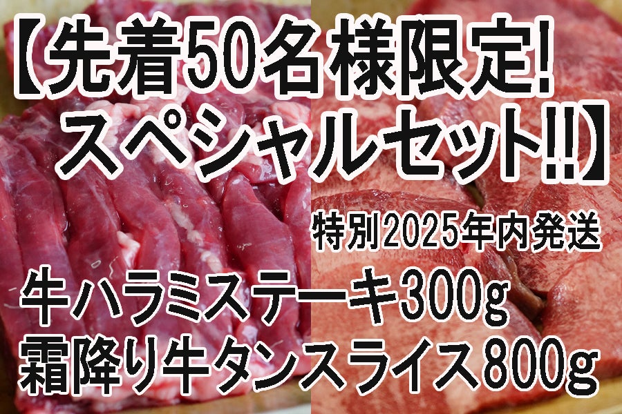 【~ 先着50名様限定! スペシャルセット!! ~牛ハラミステーキ300g & 霜降り牛タンスライス800g(100g×8p)】をご用意いたしました。
