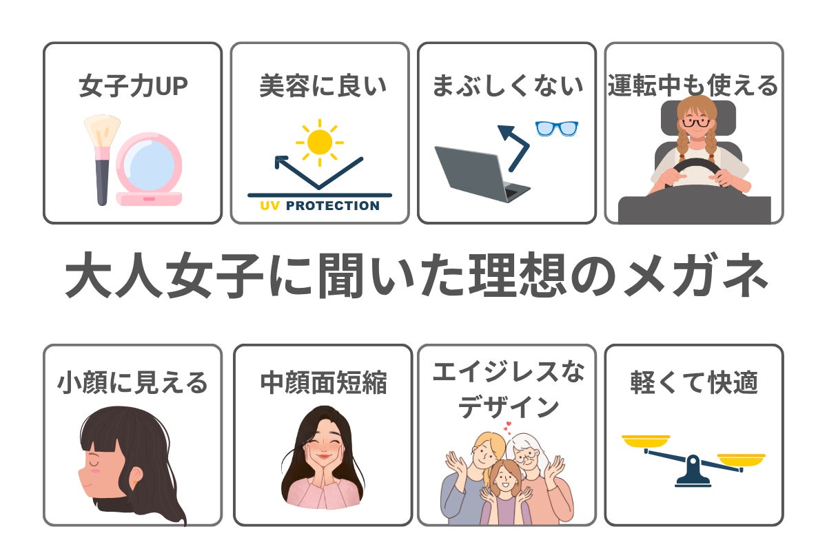 私たちはまず、「どんなメガネが欲しいですか?」と30代以上の女性たちに率直にたずねました。