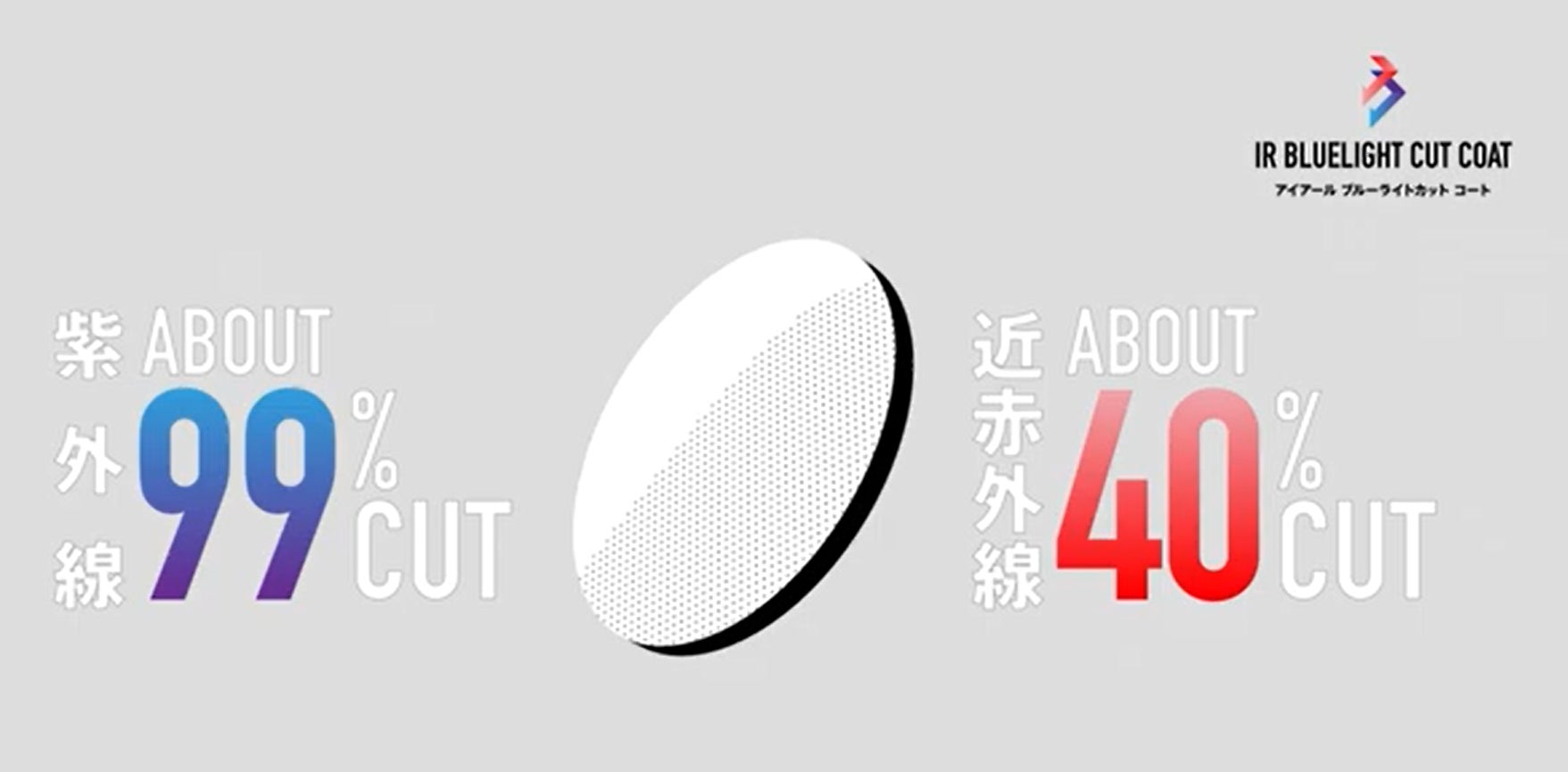 もちろん、まぶしさをやわらげる効果、UVカット、IRカット、ブルーライトカットは標準装備しています。