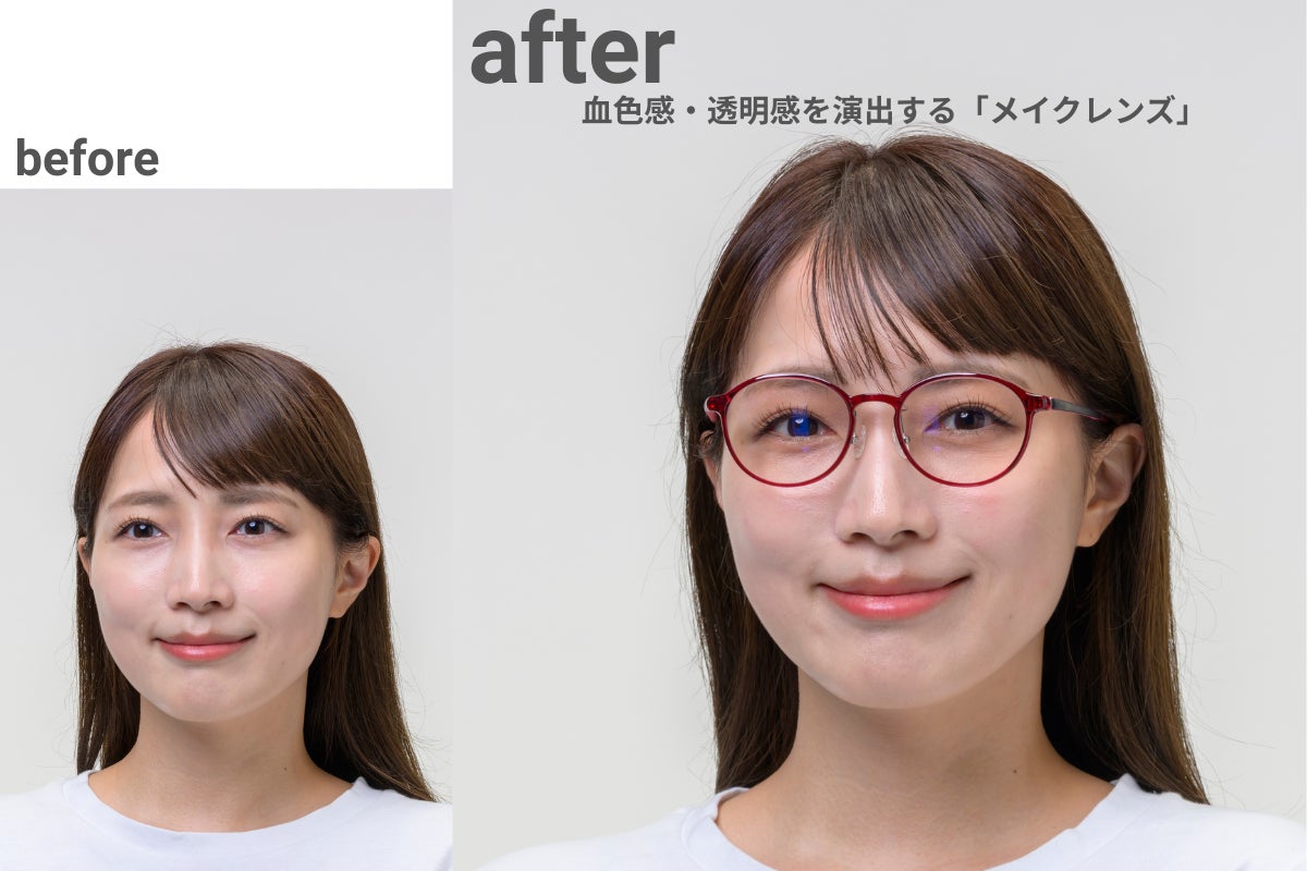 私たちがお届けするのは、30代以上の女性たちのリアルな「ほしい」をすべて詰め込んだ、ワガママメガネ。アイシャドウとチークをのせた「メイクレンズ」だから、顔色がパッと明るくなる。心が軽くなる。時短で支度がぐっとラクになる。
