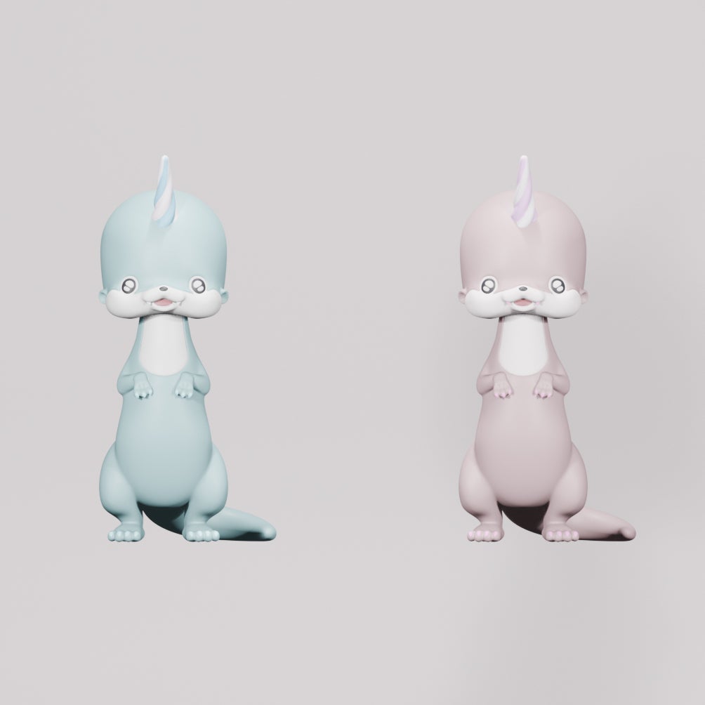 内容:ソフビ2体(通常カラーグリーン+限定カラーピンク)+めーちゃんといっしょさんの描き下ろしイッカクカワウソスカルシール2枚
