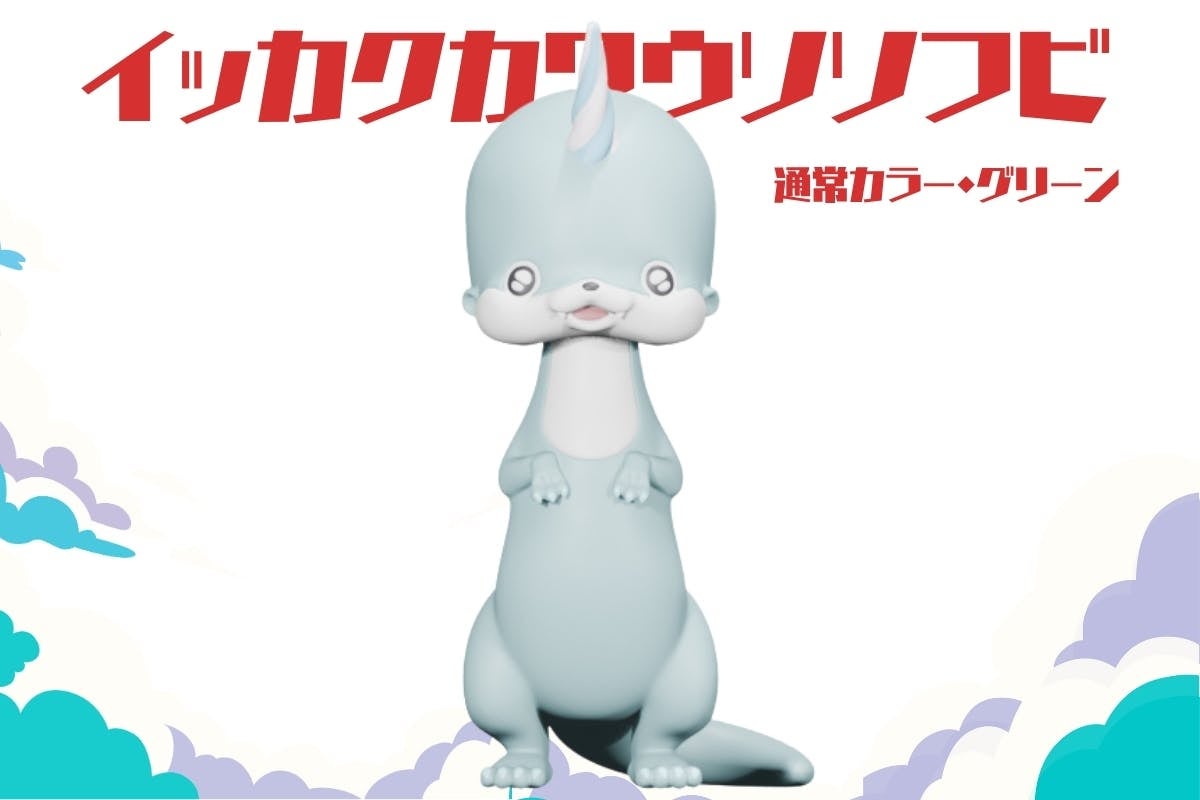 内容:ソフビ1体(通常カラーグリーン)+めーちゃんといっしょさんの描き下ろしイッカクカワウソスカルシール1枚