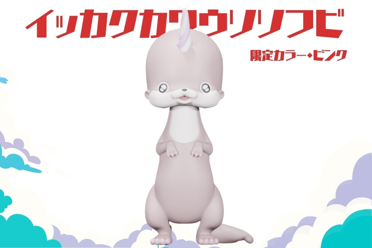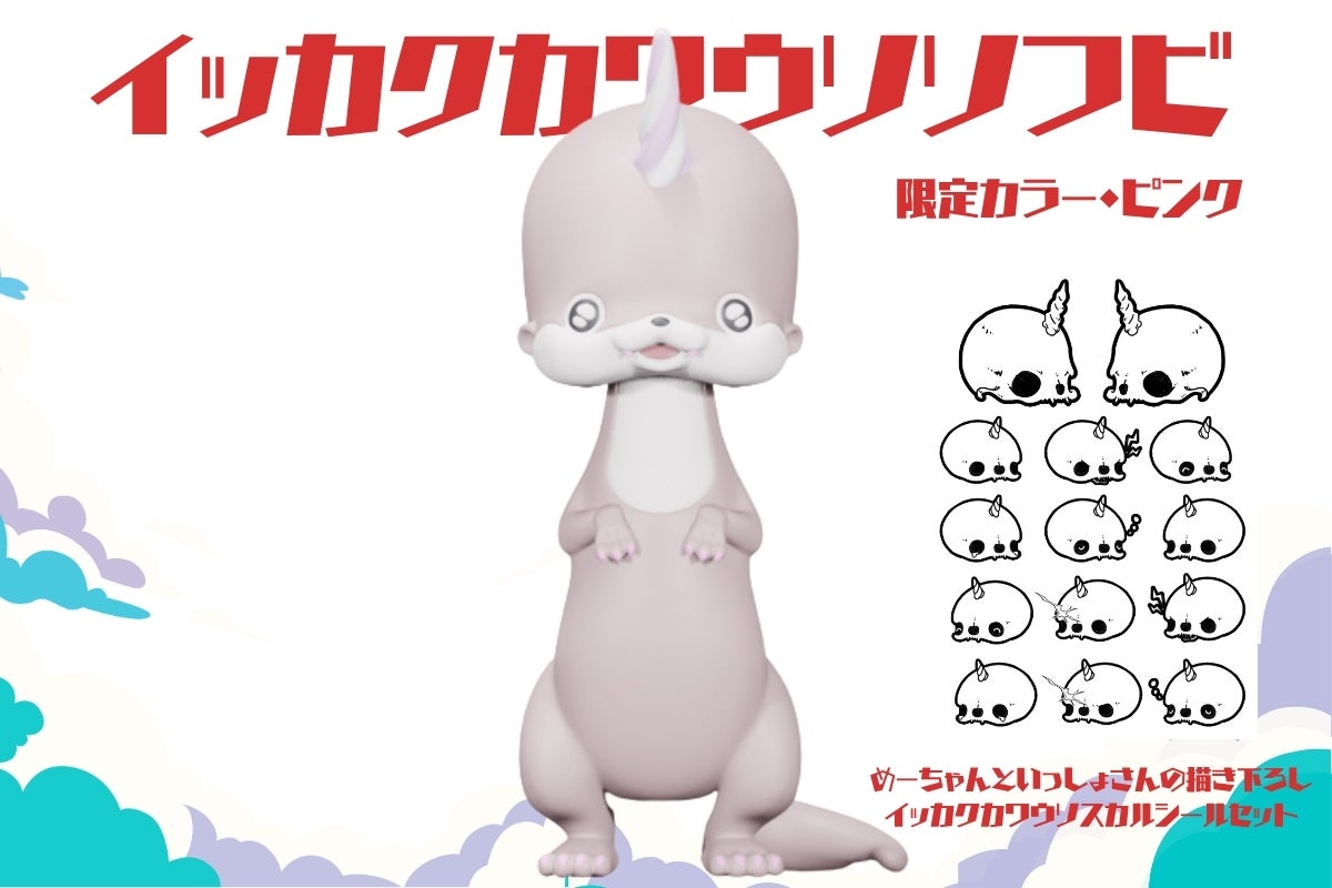内容:ソフビ1体(限定カラーピンク)+めーちゃんといっしょさんの描き下ろしイッカクカワウソスカルシール1枚