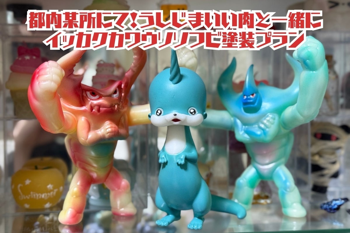 いつも塗装でお世話になっている、秋葉原工作室にてうしじまいい肉と一緒に「イッカクカワウソ」ソフビを部分的に塗装挑戦するプランです!