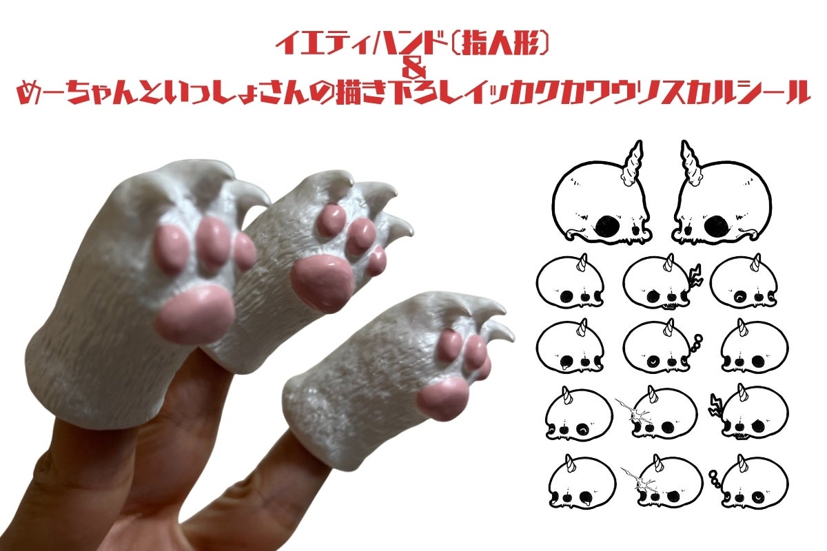 内容:イエティハンド(指人形)1点+めーちゃんといっしょさんの描き下ろし「イッカクカワウソ」スカルシール1枚