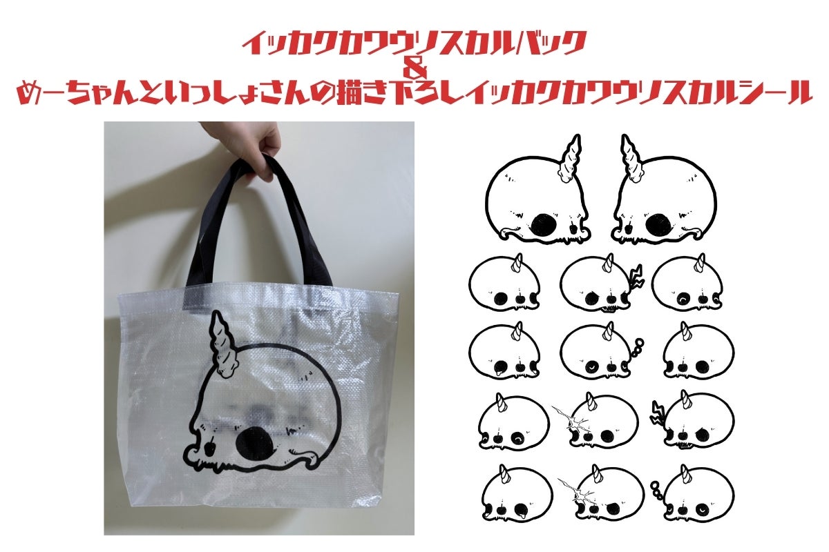 内容:「イッカクカワウソ」スカルバッグ+めーちゃんといっしょさんの描き下ろし「イッカクカワウソ」スカルシール1枚