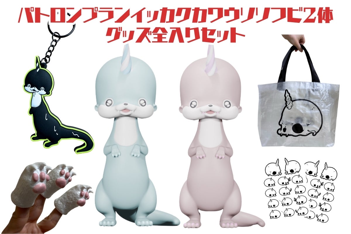 通常「イッカクカワウソ」ソフビ13,000円×2+キーホルダー2,500円+スカルバッグ2,500円+イエティハンド2,000円+シール1,500円×2で36,000円!のところが12,000円もお得に!超お得です。