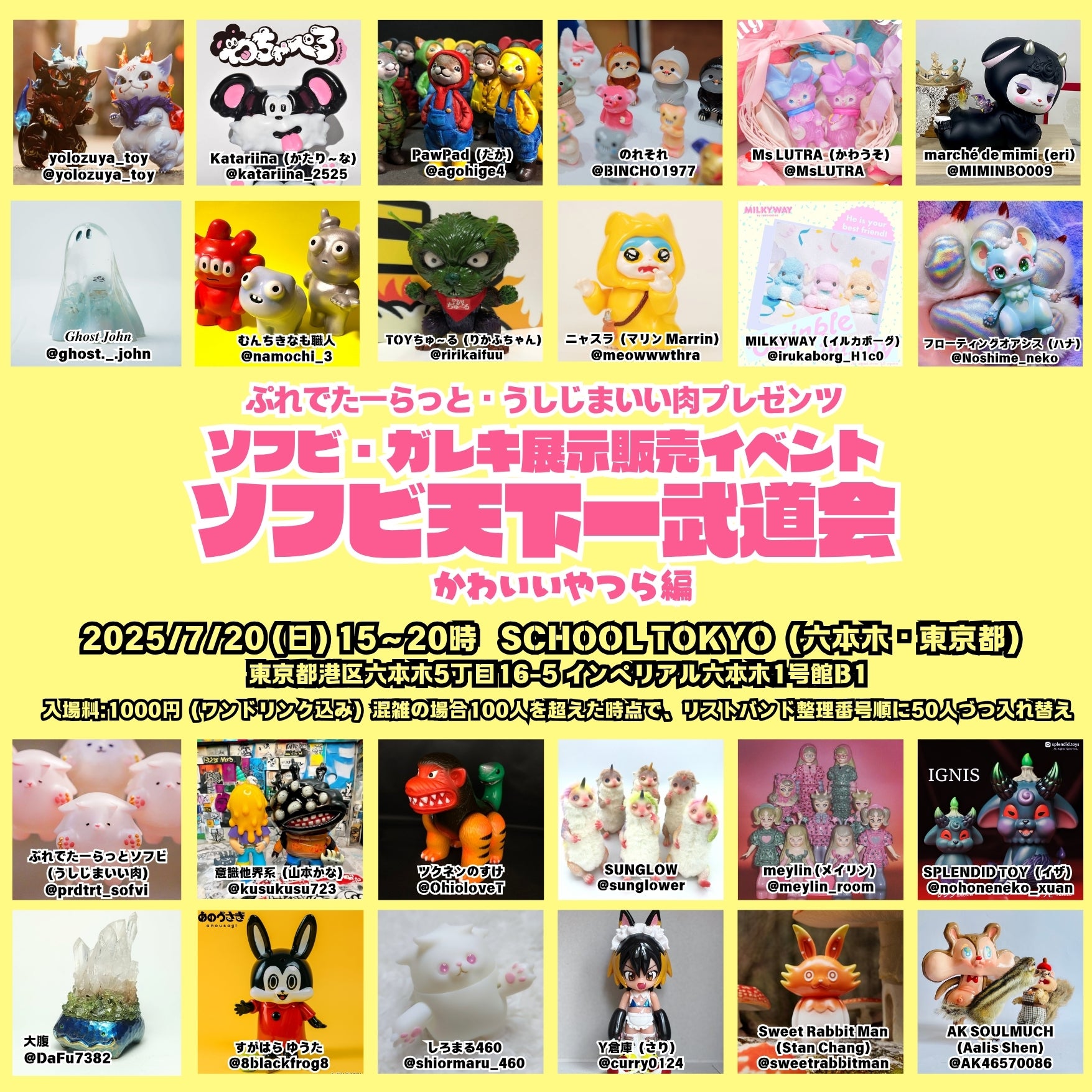うしじまいい肉主催ソフビ&ガレキ展示販売イベント「ソフビ天下一武道会~かわいいやつら編~」(六本木SCHOOL・東京都)