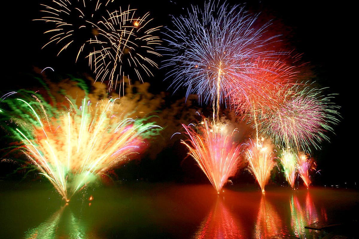 川辺町の美しい地形だからできる打上花火と水中花火!