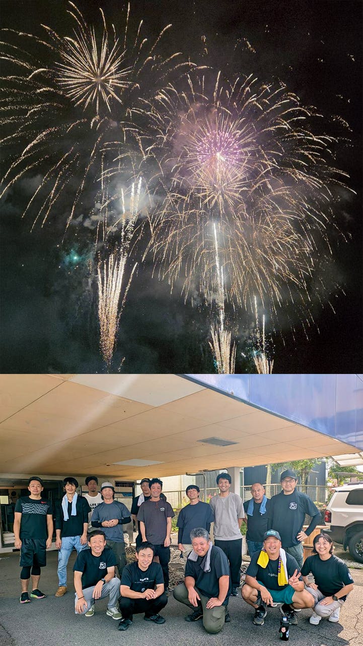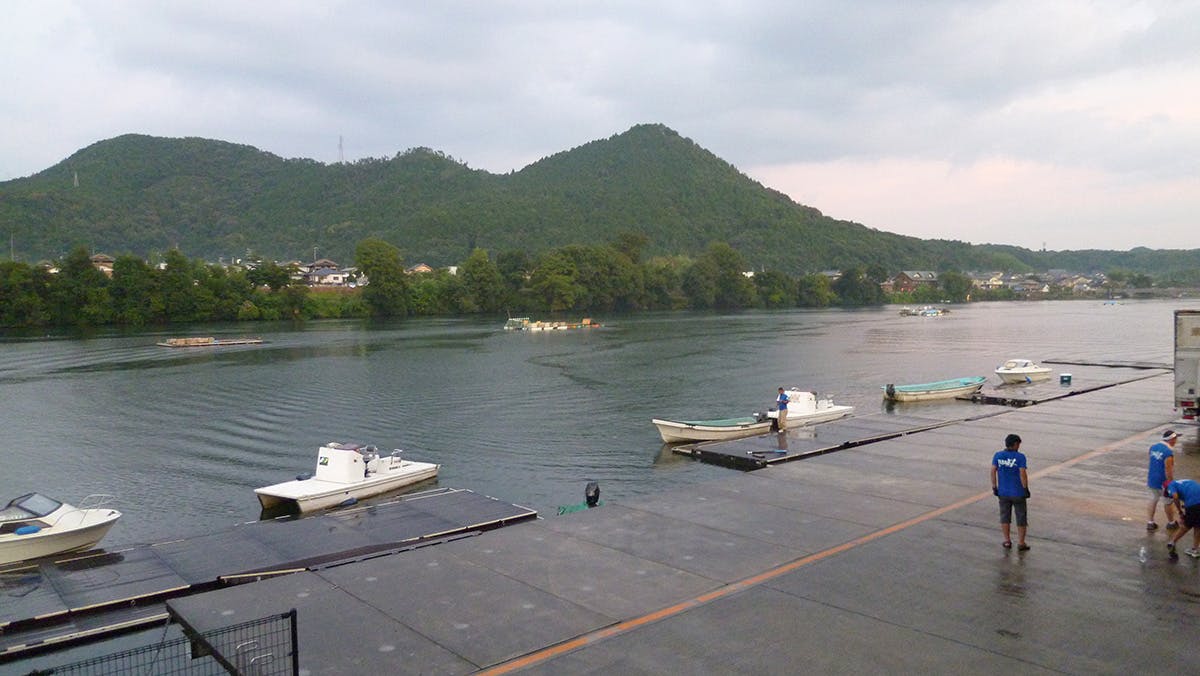 川辺町の花火は水上から打ち上げるため、台船(いかだ)を使用しています。この台船は定期的に修理やメンテナンスを行う必要があり、水に浸かるため劣化する備品も数多くあります。