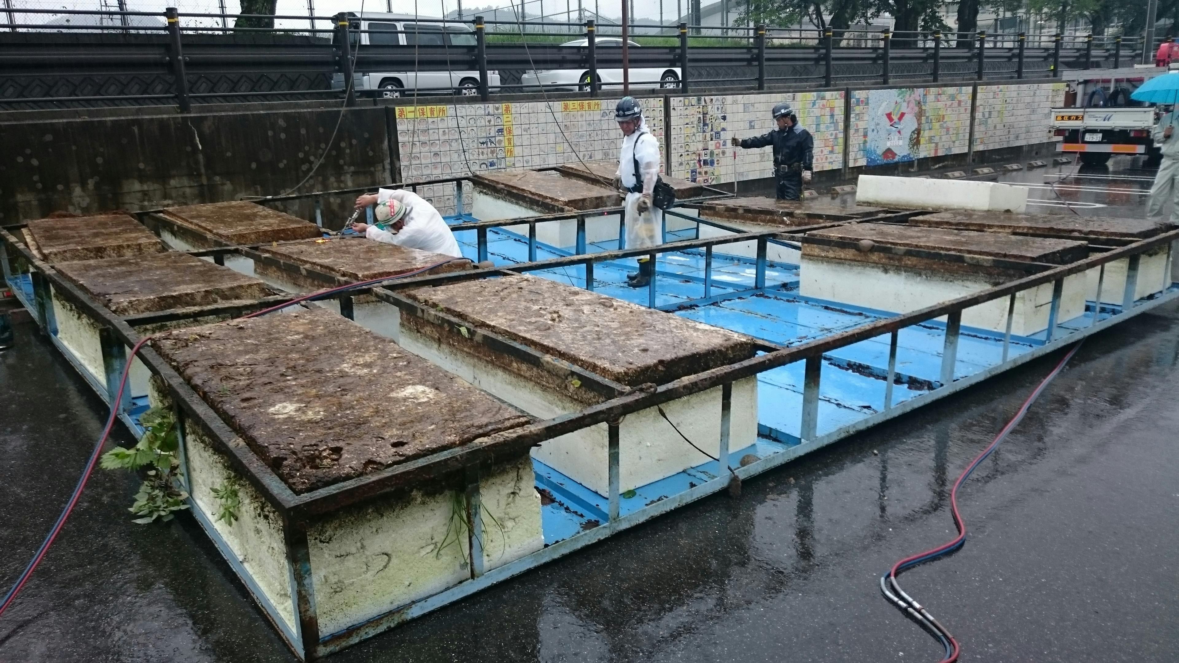 【台船の修理の様子】