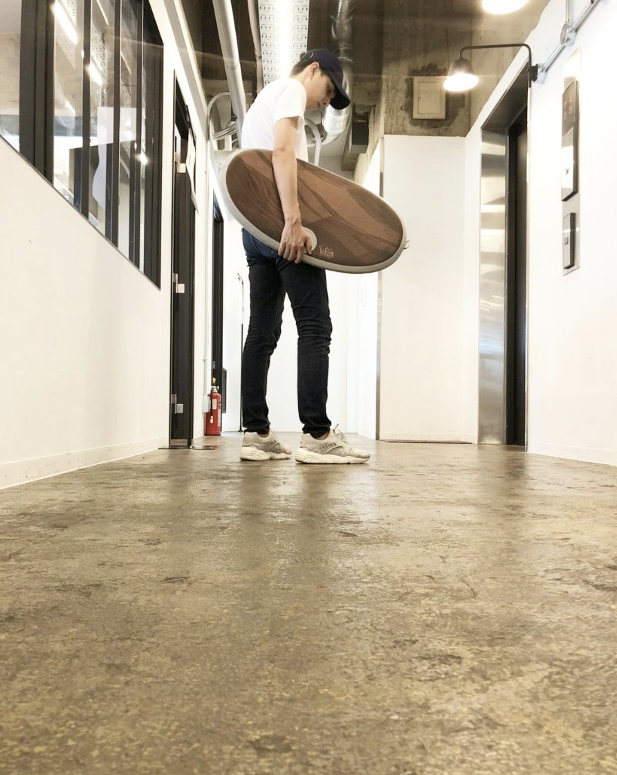 そんな中、近年海外のデスクワーカーの中で人気を集めていたのがこの「Wurf Board(ワーフボード)」。まるでサーフィンをしているような見た目で、なおかつ足の疲れを軽減させながら、効率的に仕事を進めることができるアイテムです。